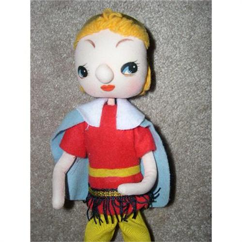 Here's an 11" cloth bendable doll made in Japan probably in the 1960's to represent a Prince. He has a sticker on his foot that says Made in Japan. He has yarn for hair and a separate protruding nose. He has glued on paper eyes and mouth. He's mint and nice and clean with no soil or odor. He's from a smoke free environment. Buyer to pay $8 for U.S. shipping, insurance, and handling. Thanks for viewing.