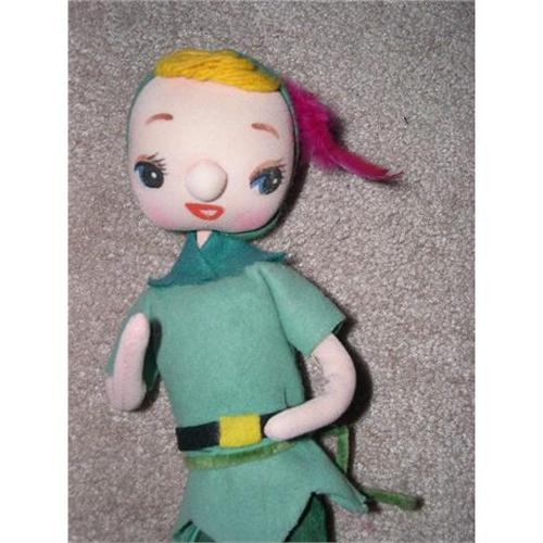 Robin Hood. He has a sticker on his boot that says Made in Japan. He has a separate protruding nose. He has glued on paper eyes and other features are printed. The doll's left eye has some rub to it. He has some yarn for his hair. He's nice and clean with no soil or odor but his green top has some fade to it. He's from a smoke free environment. Buyer to pay $8 for U.S. shipping, insurance, and handling. Thanks for viewing.