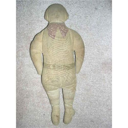 Here is a 12" printed cloth doll that is well loved and very soiled. He is cotton stuffed. You can see his bow at the neck, a belt and sock lines. He is from a smoke free environment. If you can use him, please bid. Buyer to pay $10 for U.S. shipping, insurance, and handling. Thanks for viewing.