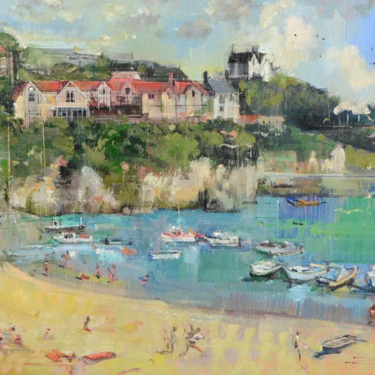 "Clouds Over New Quay" is an original oil painting on stretched canvas by Alex Zwarenstein, titled inverso hand signed by the artist. Includes Certificate of Authenticity. Measures approximately 36" x 24" (image).