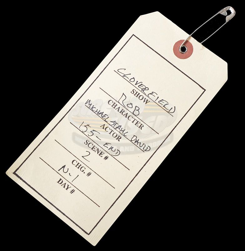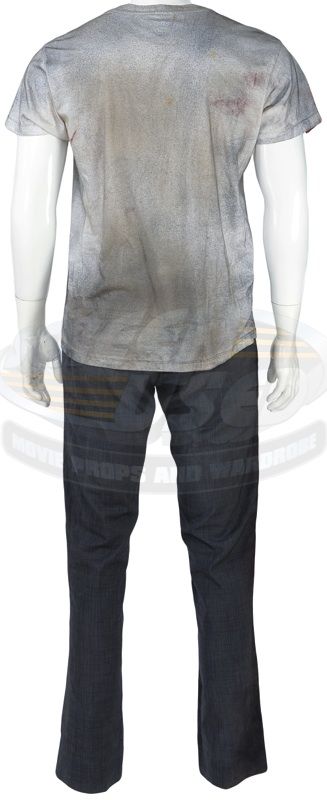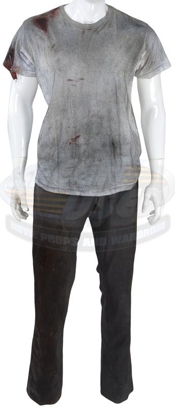 (Paramount Pictures, 2008) This outfit was acquired by the production for use by Michael Stahl-David as "Rob Hawkins". The outfit consists of a distressed t-shirt and pants both with studio blood applied and a leather belt. Included with the outfit is a production used costume tag that details the change and scene numbers used.