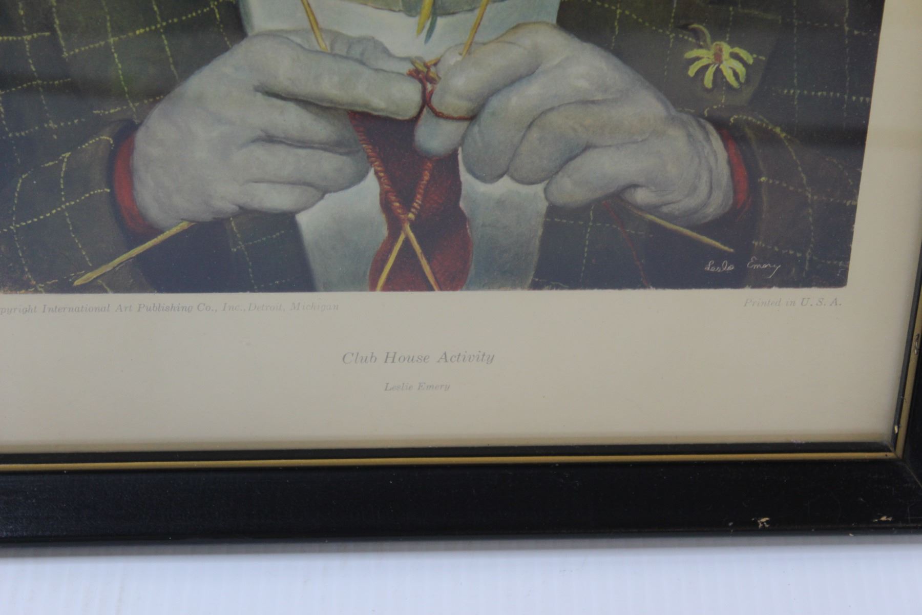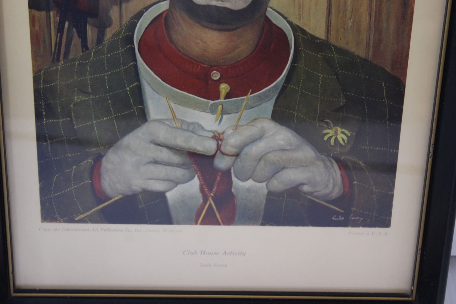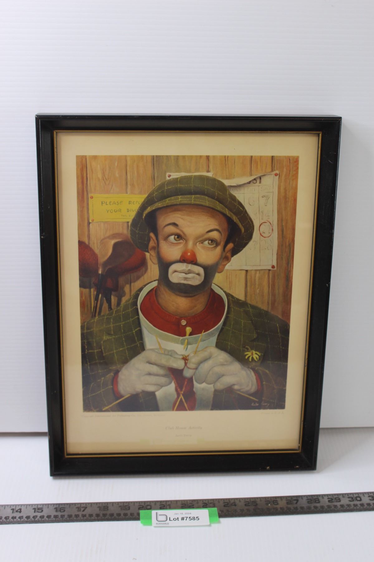 Clown Print in Wooden Frame " Club House Activity" by Leslie Emery