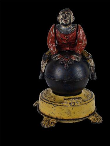 Clown on Globe Metal Bank Made by J. & E. Stevens c 1890