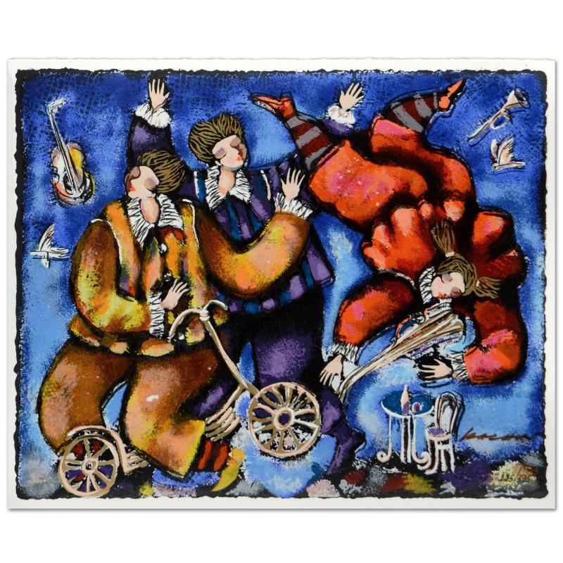 "Clowns" is a limited edition serigraph on paper by Michael Kachan, numbered and hand signed by the artist! Includes certificate of authenticity! Measures Approx. 12.5" x 10" (image).