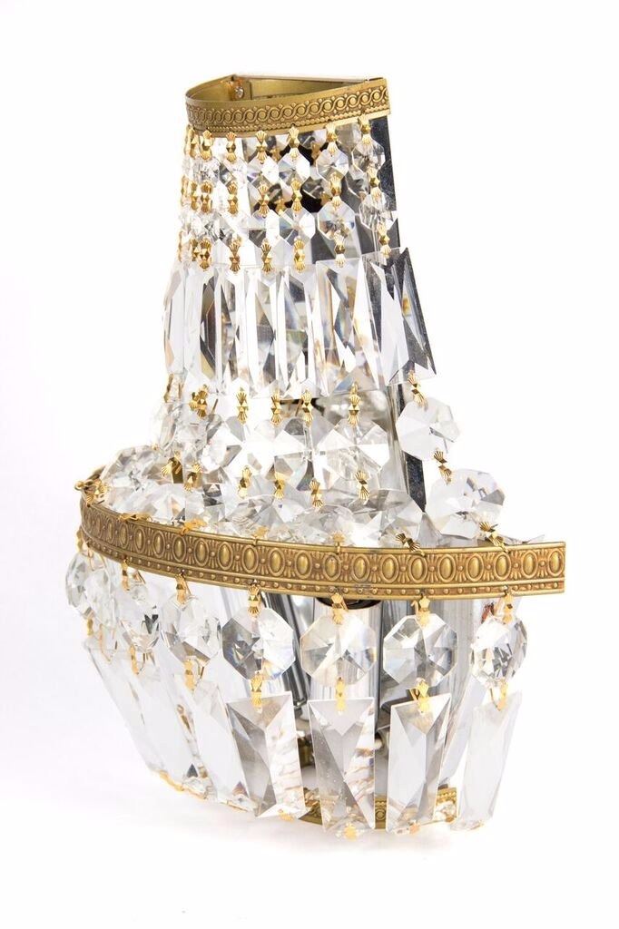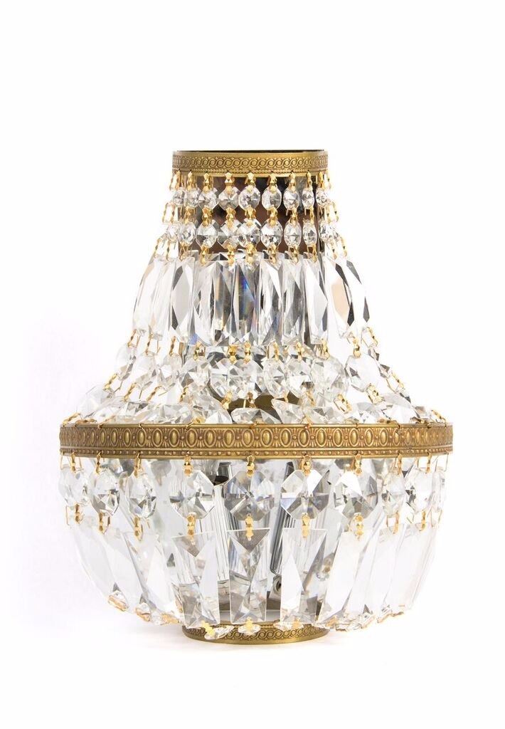 (Disneyland, c.1980s) A very rare wall light actually used in Disneyland's exclusive "Club 33". The light features a gold-tone body with mirrored interior and is lit by two bulbs. The back of the light retains its wiring and has a few hand-written notes from its time at the park. This item measures 12" tall and is in very good condition. The light's functionality has not been tested but it appears to be in good working order.
