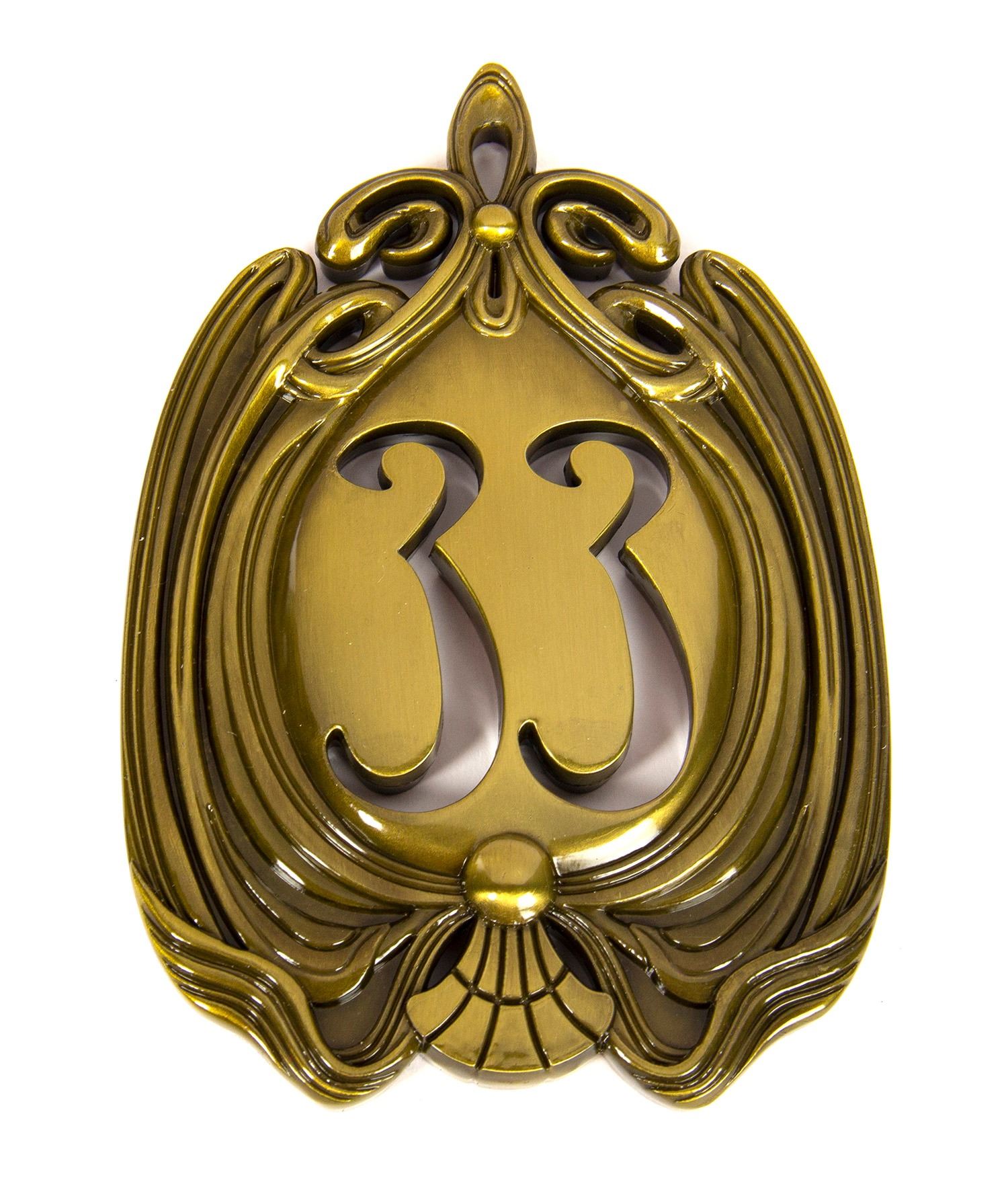 (Disneyland, c.2014) A sturdy metal paperweight featuring the new logo for Disneyland's Club 33 following the 2014 remodel. The paperweight was available exclusively to Club members, and comes in a satchel with the logo emblazoned in gold on the front. Measuring 5"x3.5", the paperweight is in very good condition with minor scuffs to the surface.