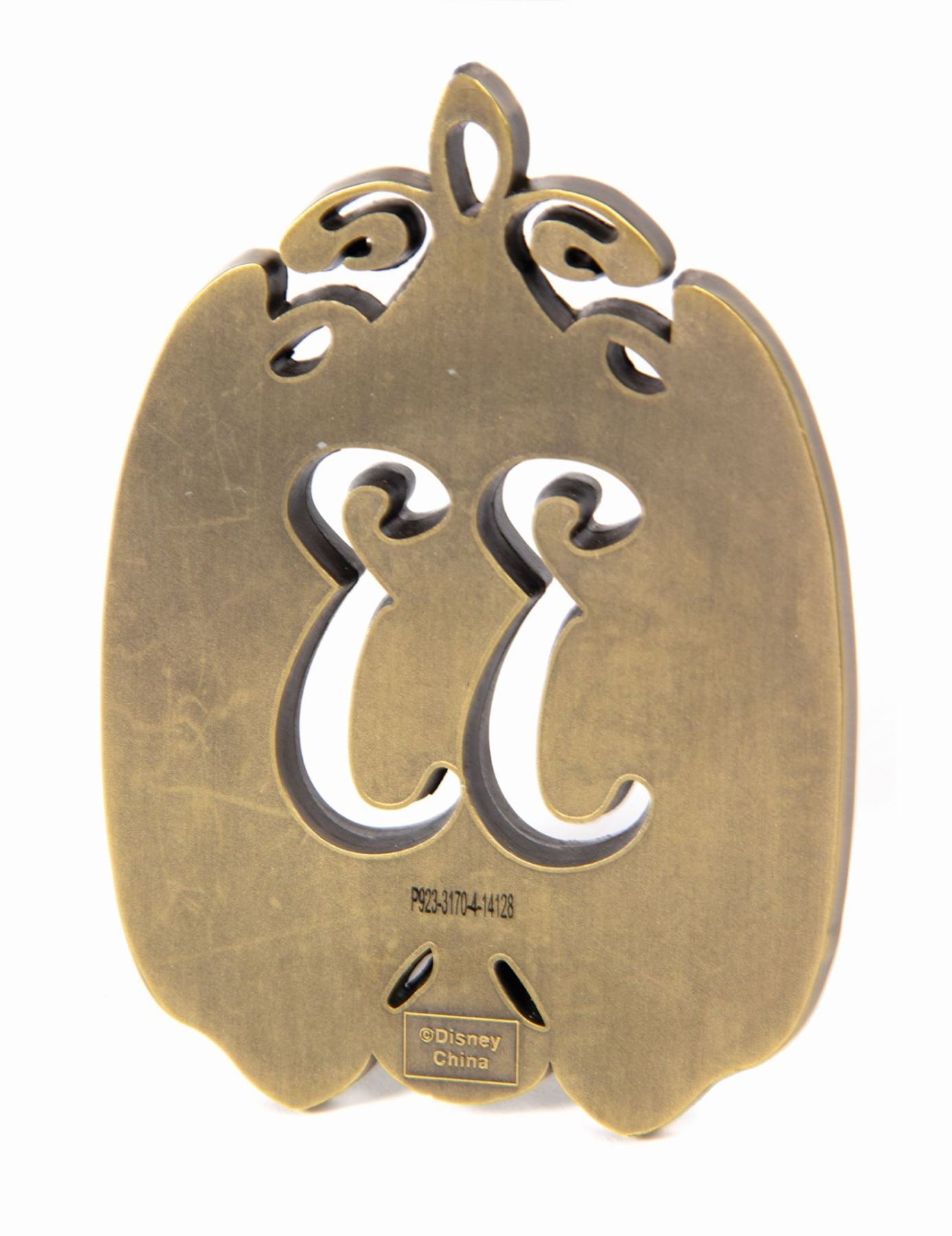 (Disneyland, c.2014) A sturdy metal paperweight featuring the new logo for Disneyland's Club 33 following the club's 2014 remodel. The paperweight was available exclusively to members and measures 5"x3.5". It is in very good condition with minor scuffs to the reverse.