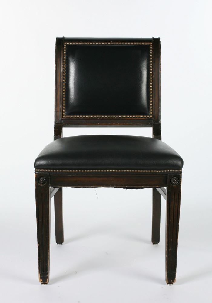 (Disneyland, 1967) Original chair used in the first years of operation at Disneyland's exclusive Club 33. This wooden padded chair was part of the club's original iconic decor and has likely been enjoyed by some of the park's earliest visiting celebrities and VIPs. Measures 24"x20" and 33.5" tall. In good condition with expected wear throughout from years of enjoyment within the park.