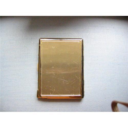 Benson & Hedges Collectible Cigarrette case with Lighter of yellow metal brass. Interior has engraving label with symbol of Benson & Hedges Crown and B-H. It is vintage with imperfections scratches. The Lighter is on the corner and uncertain of working condition , never used it. This case is 4.75 inch by 3.5 inch by .5 (when opens double the size. Interesting to collect, and something to think about!