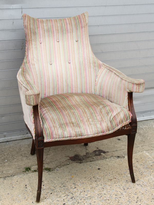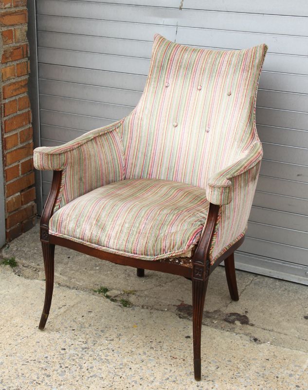 Item: Club Chair, Mahogany with Modern Stripe Upholstery
