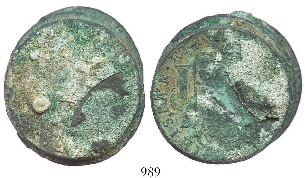 Clump of 5 Spanish colonial bust 8 reales in a neat stack. 138 grams. Tight stack of well-preserved coins, but with only a few reverse details on one end as the rest is totally covered in green and white encrustation and debris. From the Dr. E. Lee Spence collection. From: Leocadia, sunk in 1800 off Ecuador