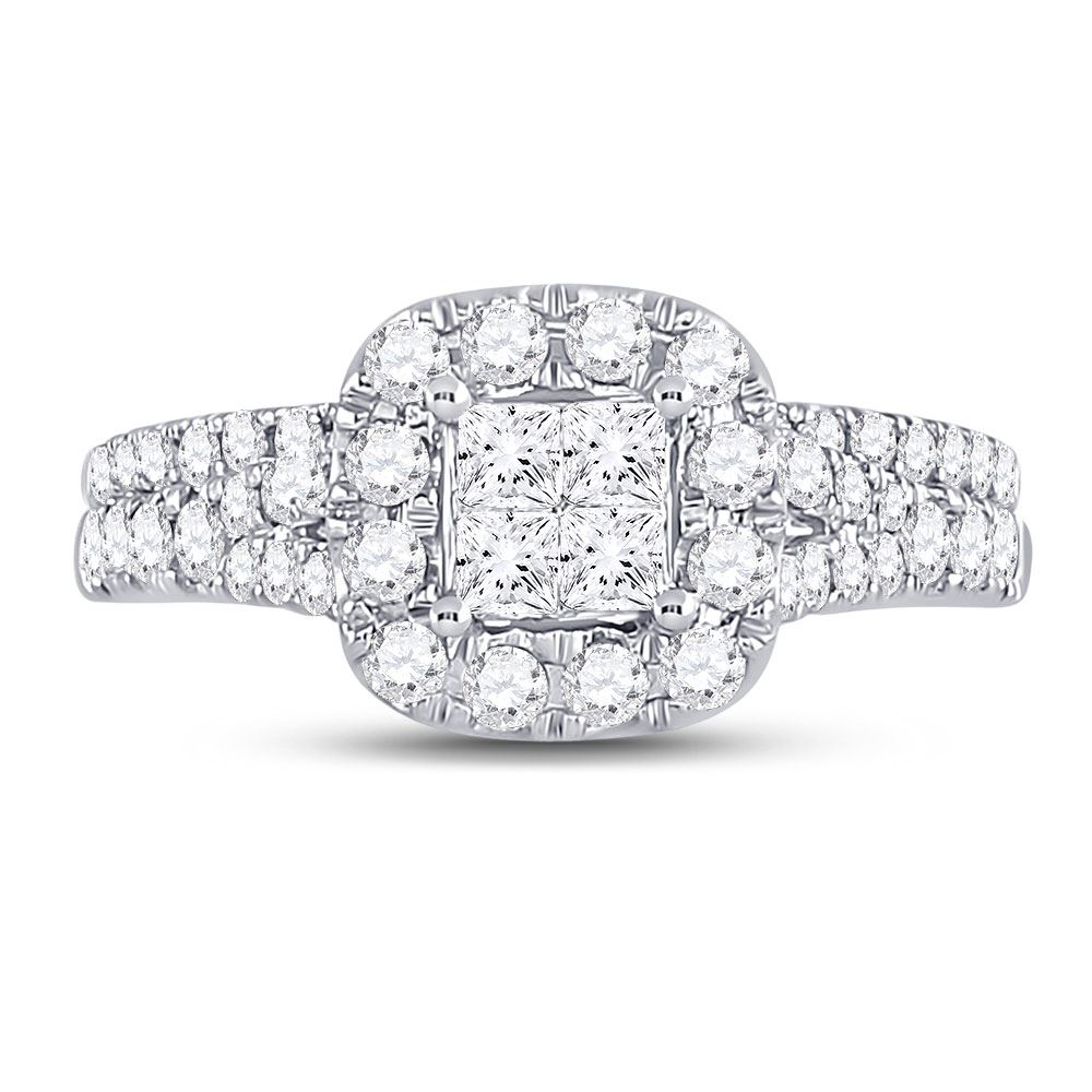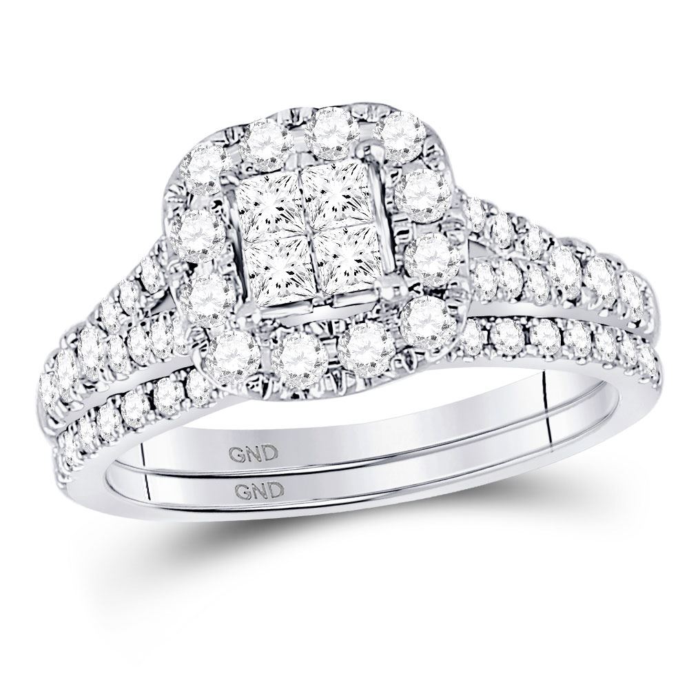 14kt White Gold Princess Diamond Cluster Bridal Wedding Ring Band Set 1 Cttw.