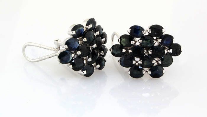 Cluster Sapphire 38.34CTW Sterling Silver Earring **|**|** Cluster of Oval Shape Sapphire Gemstone in Silver Earring w/ Clipon Back; Size: 5x4mm; ctw: 13.44; stone count: 28; gram weight: 4.98 ; MSRP: $500
