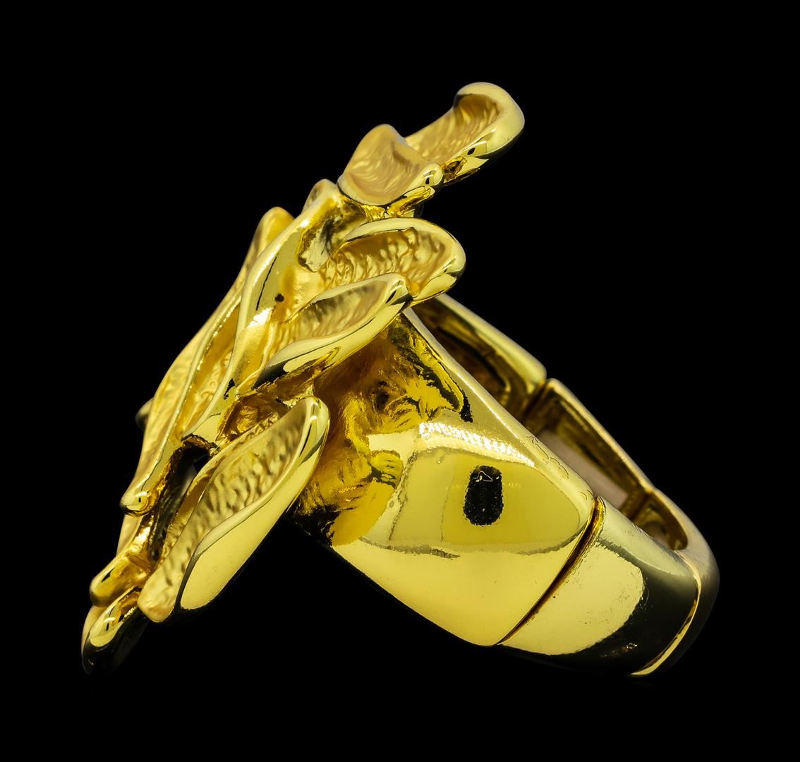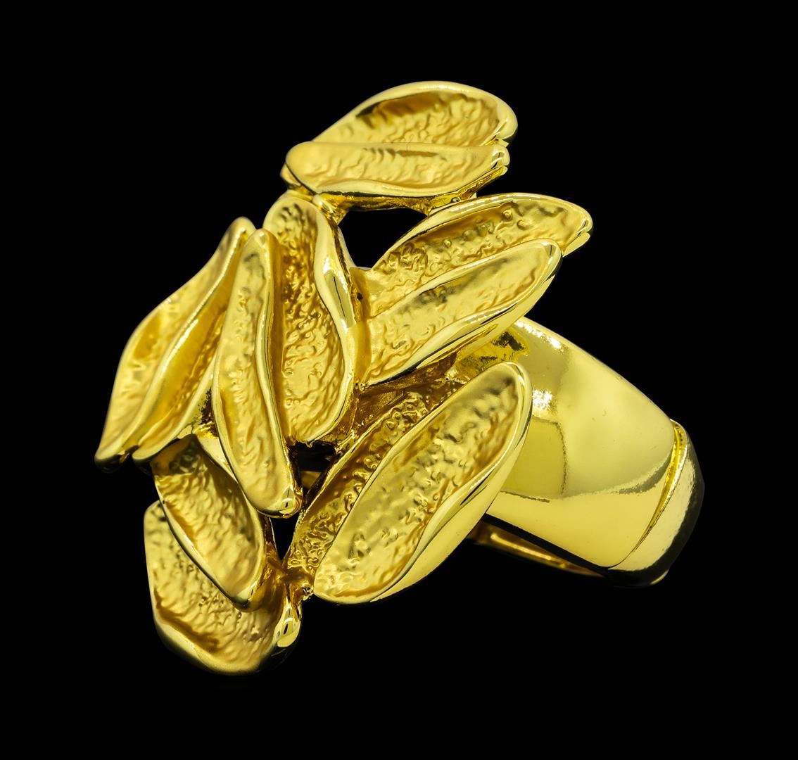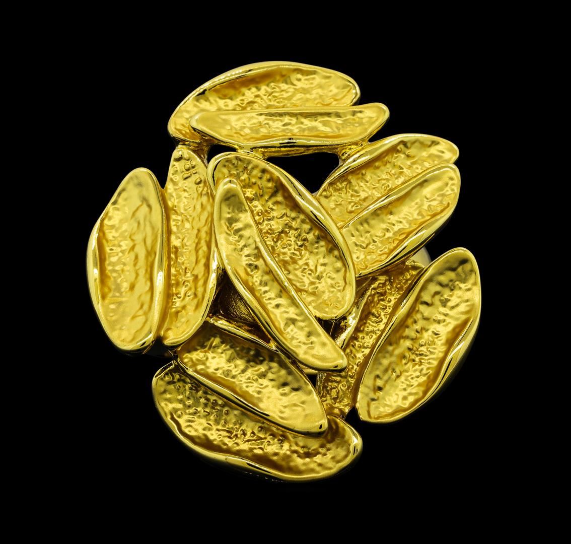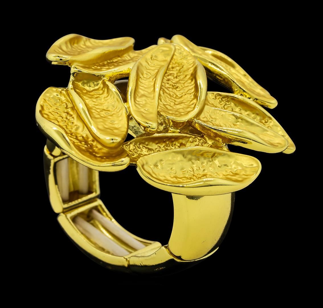 High end designer jewelry. Cluster Style Oval Shape Ring - Gold Plated. Gold Plated/ Elastic. Gold. 1.5inches. Total Weight: 12.7 grams.