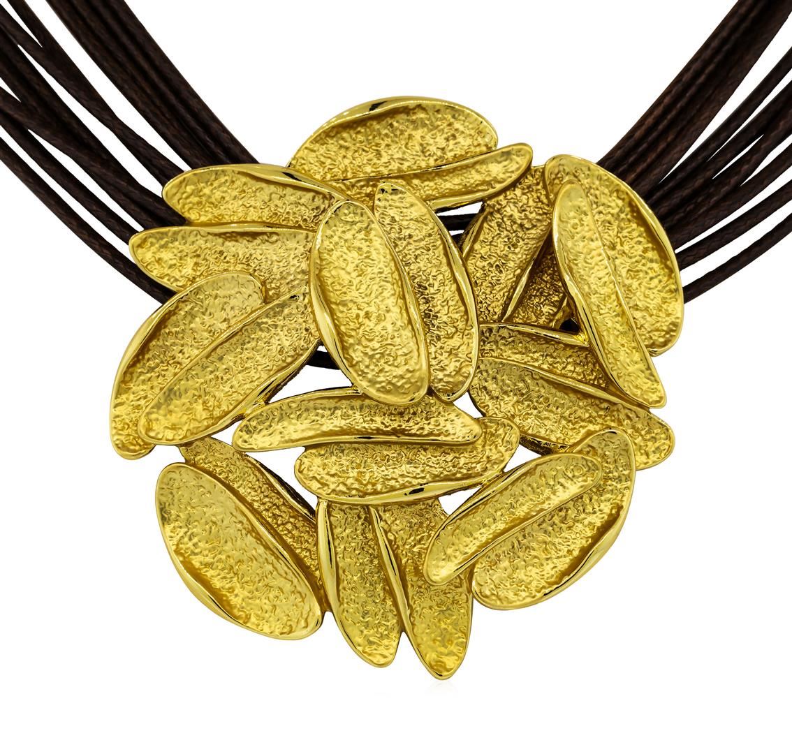 High end designer jewelry. Cluster Style Pendant Multi Strand Necklace - Gold Plated. Gold Plated/3" Ext Clasp. Gold/ Brown. 16inches. Total Weight: 43.8 grams.