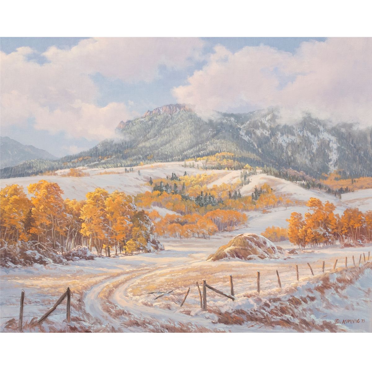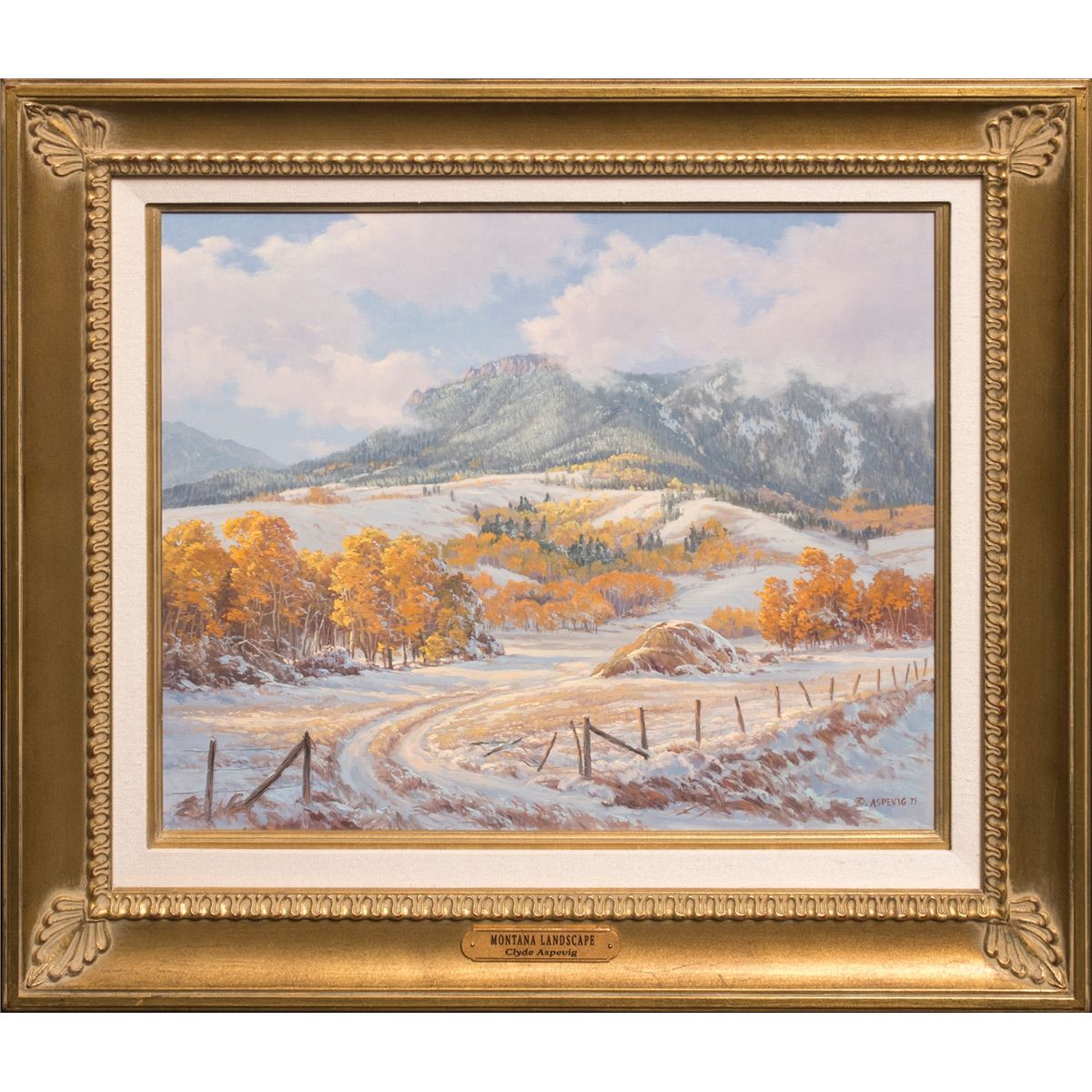Clyde Aspevig (1951 - ). Montana Landscape. 16" x 20" oil on canvas. Signed lower right: © ASPEVIG 79. Provenance: Estate of Ken Holm, Denver, CO.