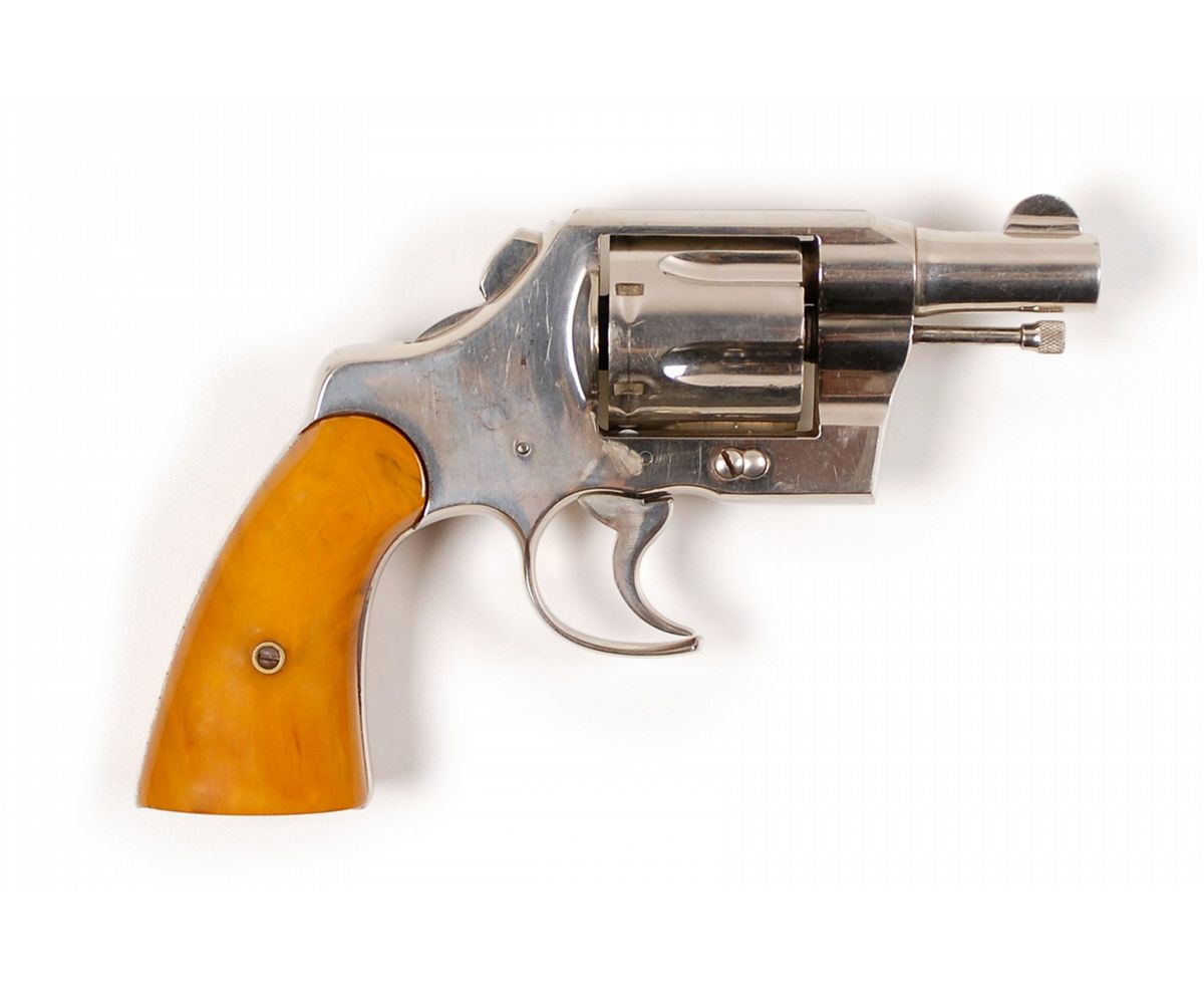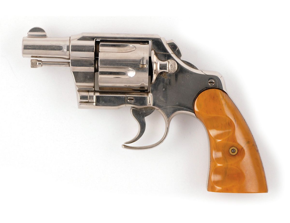 A Colt Army Special .38 Caliber revolver used by Clyde Barrow. This revolver serial number 505844, cal. .38 Special, has been modified in the style of the Colt factory “Fitzgerald Specials” with a 2 3/8? barrel, bobbed hammer, and a cutaway triggerguard. It is in fine condition with all of a good looking nickel plated refinish remaining and finger grooved yellow phenolic grips. The bore has a couple of spots of light corrosion that should clean.