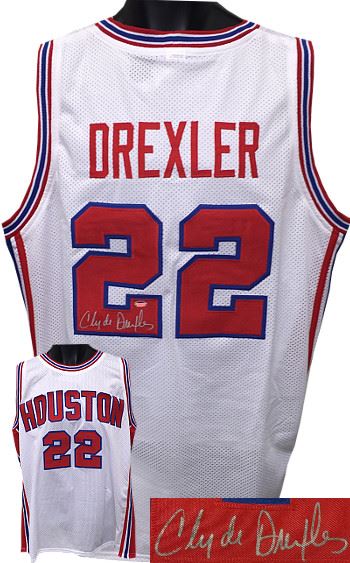 Clyde Drexler and Michael Young, along with Larry Micheaux and new recruit Hakeem Olajuwon, comprised the "Phi Slamma Jama" basketball fraternity that gained national attention for its acrobatic, above-the-rim play. New players were "initiated" into the fraternity by having to stand underneath the basket as Drexler drove in from halfcourt and threw down a tomahawk slam over them. The Houston Cougars made the first of Drexler's two straight Final Four appearances in 1982, where they lost to eventual champions North Carolina. Drexler won an Olympic gold medal in 1992 as part of the Dream Team and an NBA championship in 1995 with the Houston Rockets. Clyde Drexler Houston Cougars has hand signed this White TB unlicensed custom-prostyle jersey with twill stitched nameplate and numbers. Schwartz Sports Hologram and Certificate of Authenticity from Athlon Sports Collectibles. Size XL