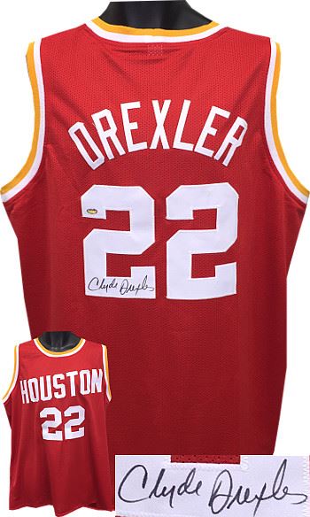 Clyde "The Glide" Drexler played shooting guard and small forward in the NBA. A ten-time All-Star and member of the Basketball Hall of Fame, the NBA named him one of basketball's fifty greatest players as of 1996. Drexler won an Olympic gold medal in 1992 as part of the Dream Team and an NBA championship in 1995 with the Houston Rockets. Clyde Drexler Houston Rockets has hand signed this Red TB unlicensed custom-prostyle jersey with twill stitched nameplate and numbers. Schwartz Sports Hologram and Certificate of Authenticity from Athlon Sports Collectibles. Size XL