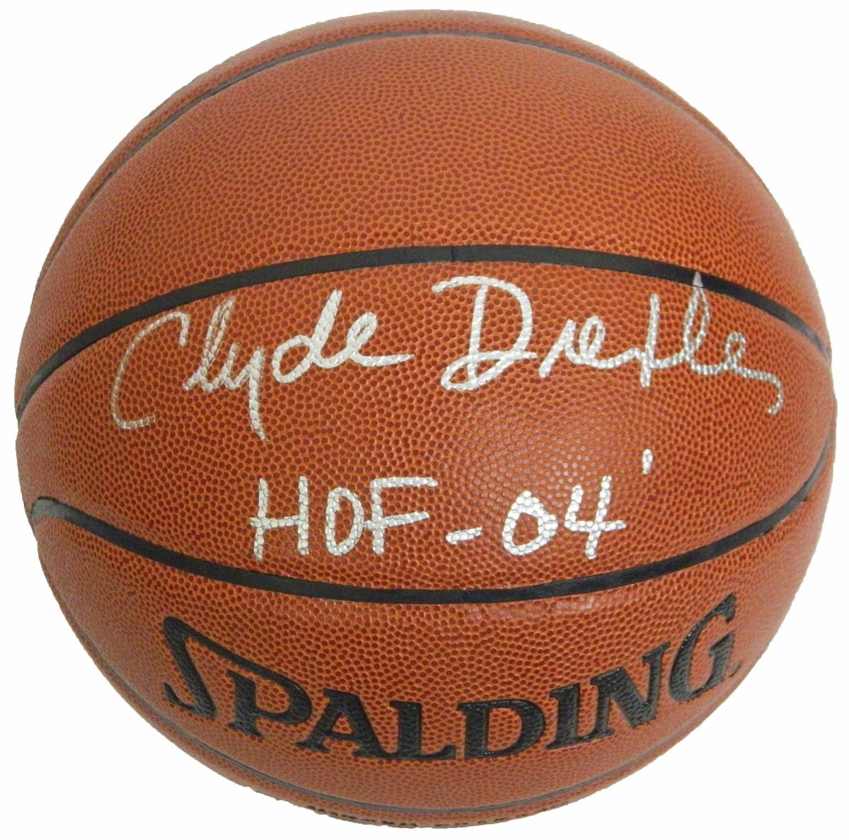 Clyde Drexler signed Spalding NBA Indoor/Outdoor basketball with 'HOF 04' inscription. Item comes with a Schwartz Sports Memorabilia tamper-proof numbered hologram which can be verified online.