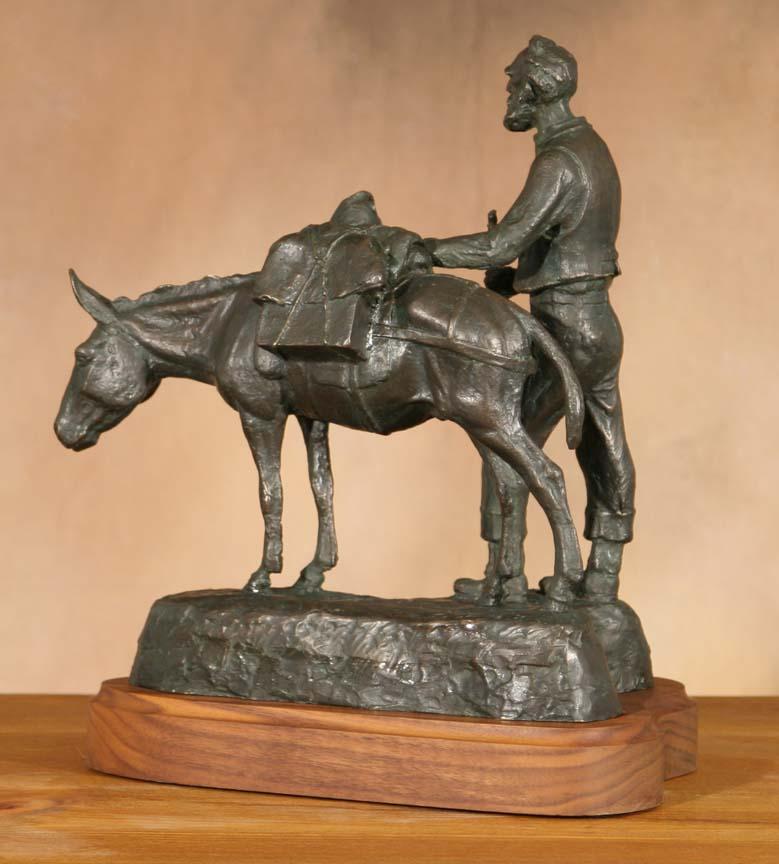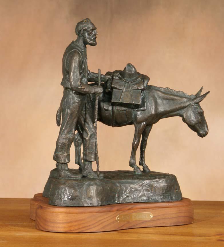 Clyde Forsythe (1885-1962). Prospector & Burro, 1968. Bronze #25/35. 12" x 12" x 5". (est $3,000-4,000). For condition reports please visit: www.auctioninsantafe.com/cr2011.pdf