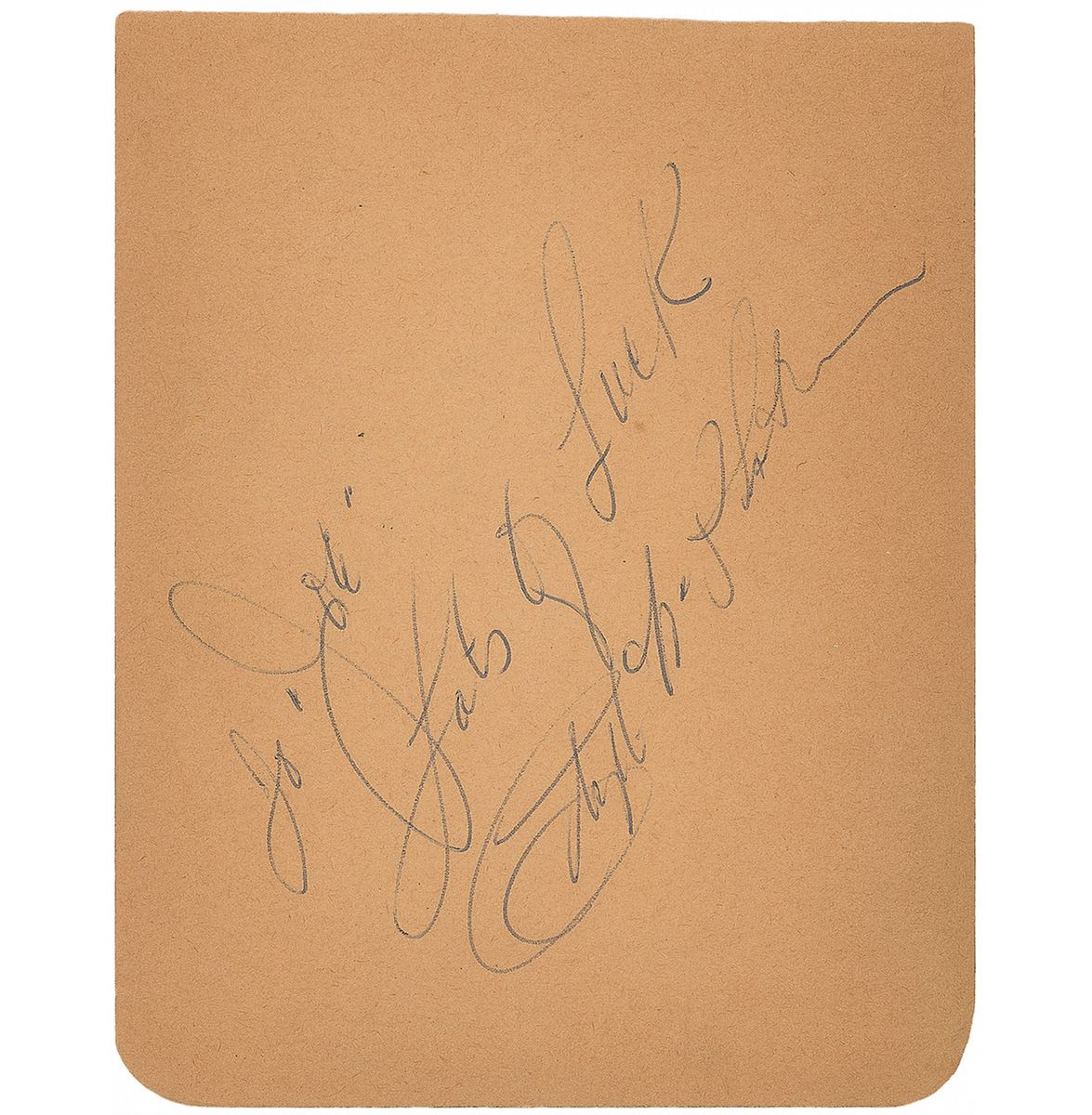 Ballpoint signature and inscription, “To Joe, Lots of luck, Clyde McPhatter,” on an off-white 3.75 x 4.75 album page. In fine condition.