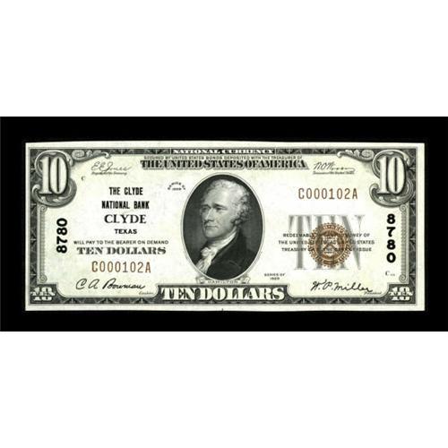 <B>Clyde, TX</B></I> - $10 1929 Ty. 1 <B>The Clyde NB</B></I> Ch. # 8780<BR> A bright and fresh example of this classic Texas hoard note. <B>Choice Crisp Uncirculated.</B></I><BR><BR><b>Shipping:</b> Coins & Currency (<a target="_blank" href="http://www.heritageauctions.com/common/shipping.php">view shipping information</a>)