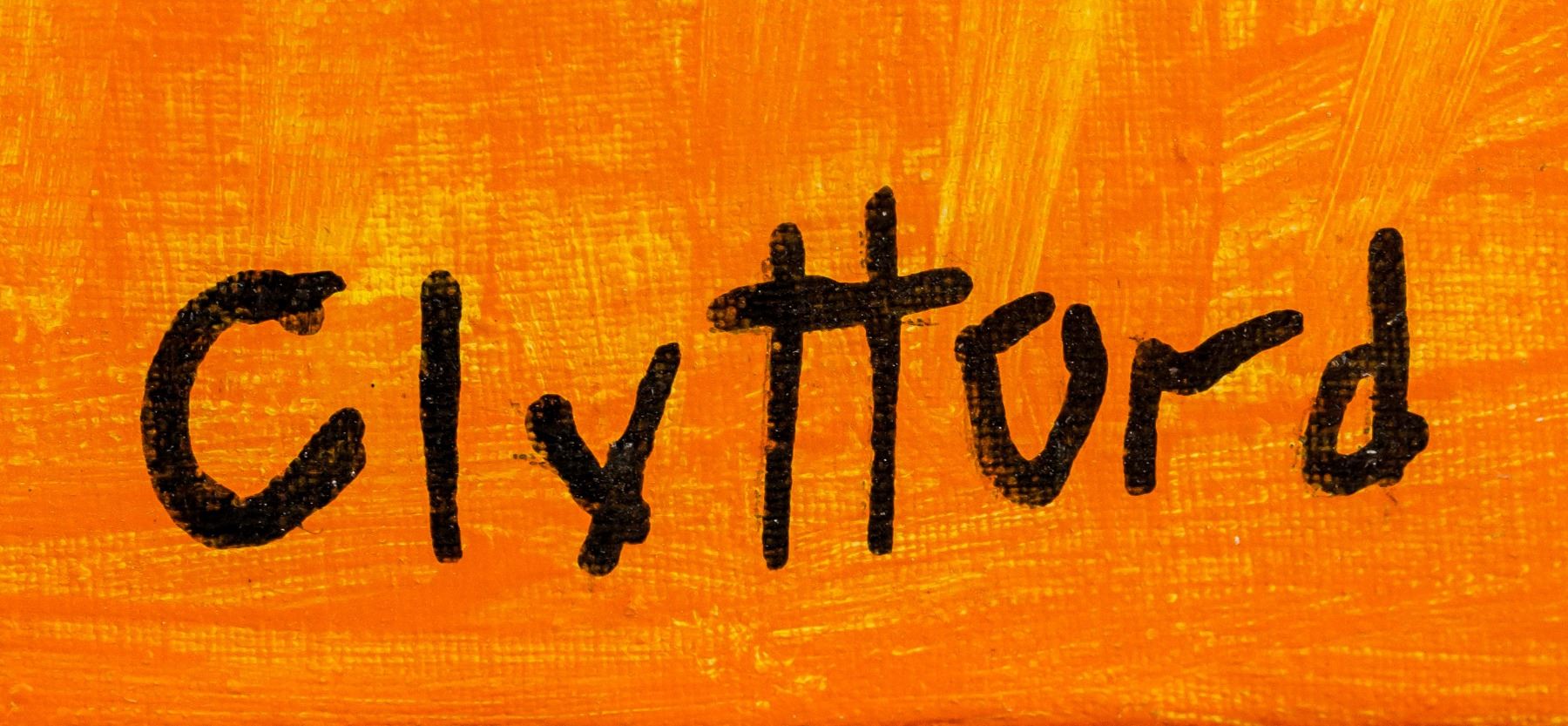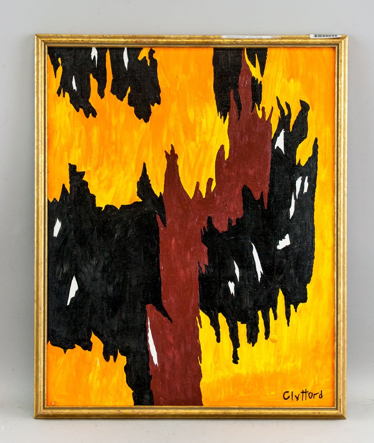 Oil on canvas, stretched and framed. Featuring an abstract expressionist composition. Signed Clyfford on the lower right corner. Attributed to Clyfford Still (American, 1904-1980). 52 x 42 cm (20.5 x 16.5 inches). Frame size: 55 x 45 cm (21.7 x 17.7 inches). PROVENANCE: Southern Ontario estate