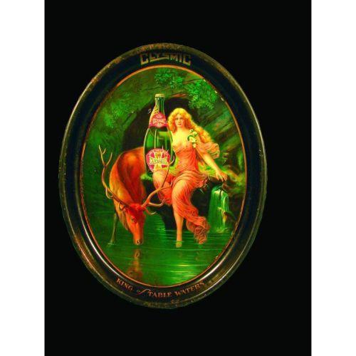 Clysmic Table Water Tin Serving Tray, some rust around the perimeter otherwise very good condition, 12 1/2 x 16 inches.