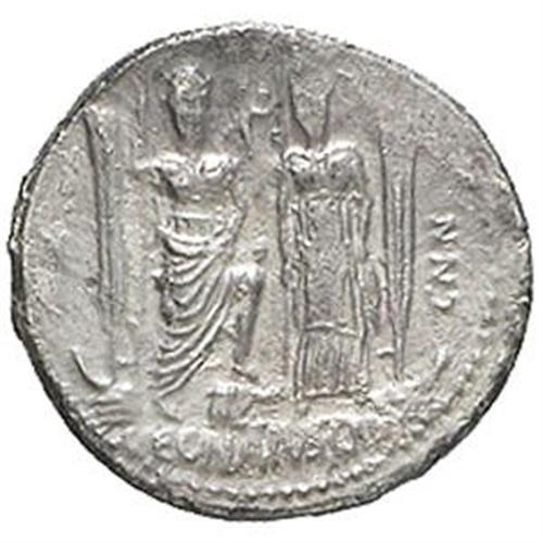 Repubblica Romana. Cn. Egnatius Cn. f. Cn. n. Maxsumus. Denario, 75 a.C. D/ MAXSVMVS. Testa della Libertas a destra. R/ Roma e Venere stanti di fronte, la seconda accarezzata da Cupido. Ai due lati, remo su prua. In esergo: C. EGNATIVS CN. F. A destra, CN. N. Cr. 391/3. B. 2. gr. 3.52 R. AG. SPL/qSPL.
