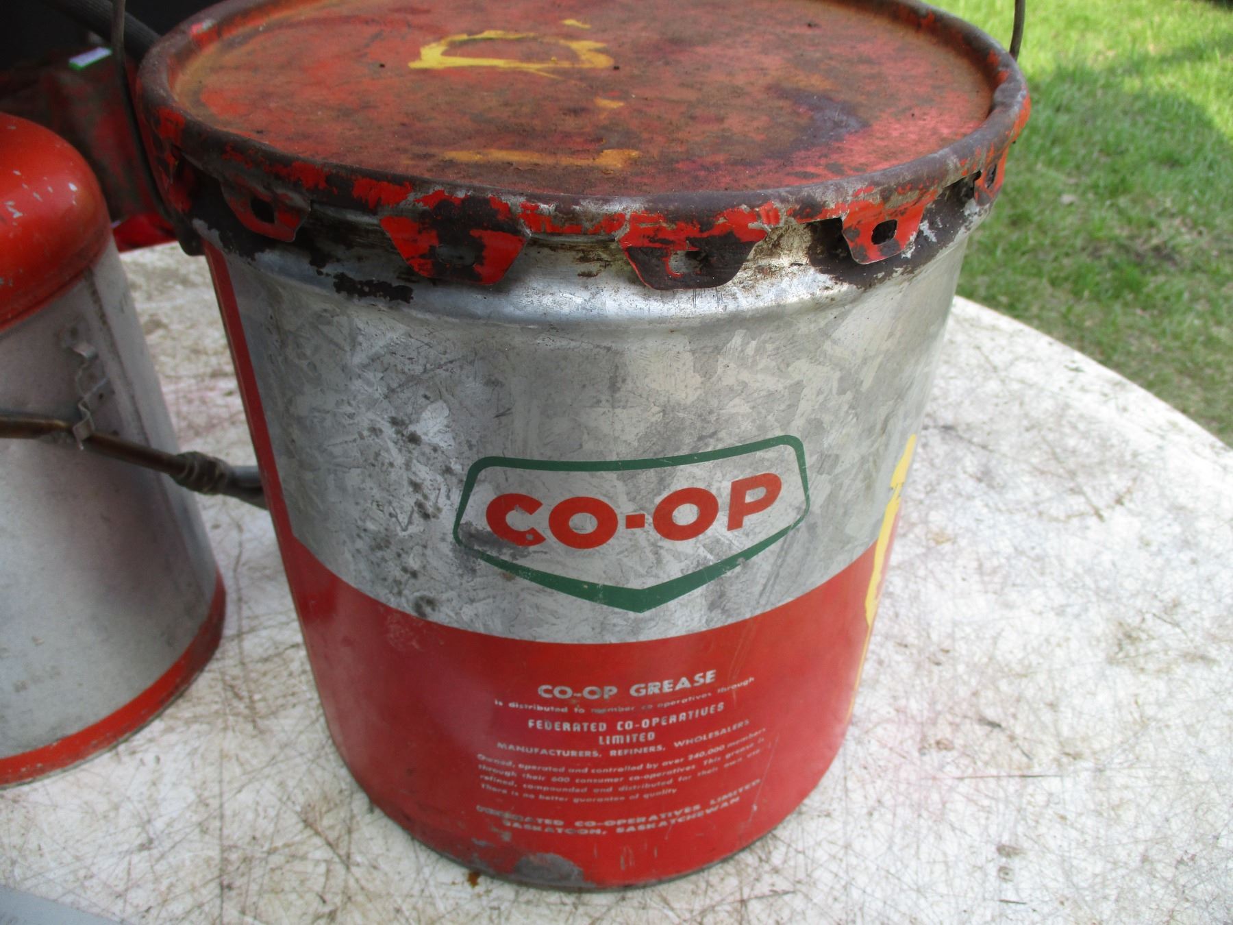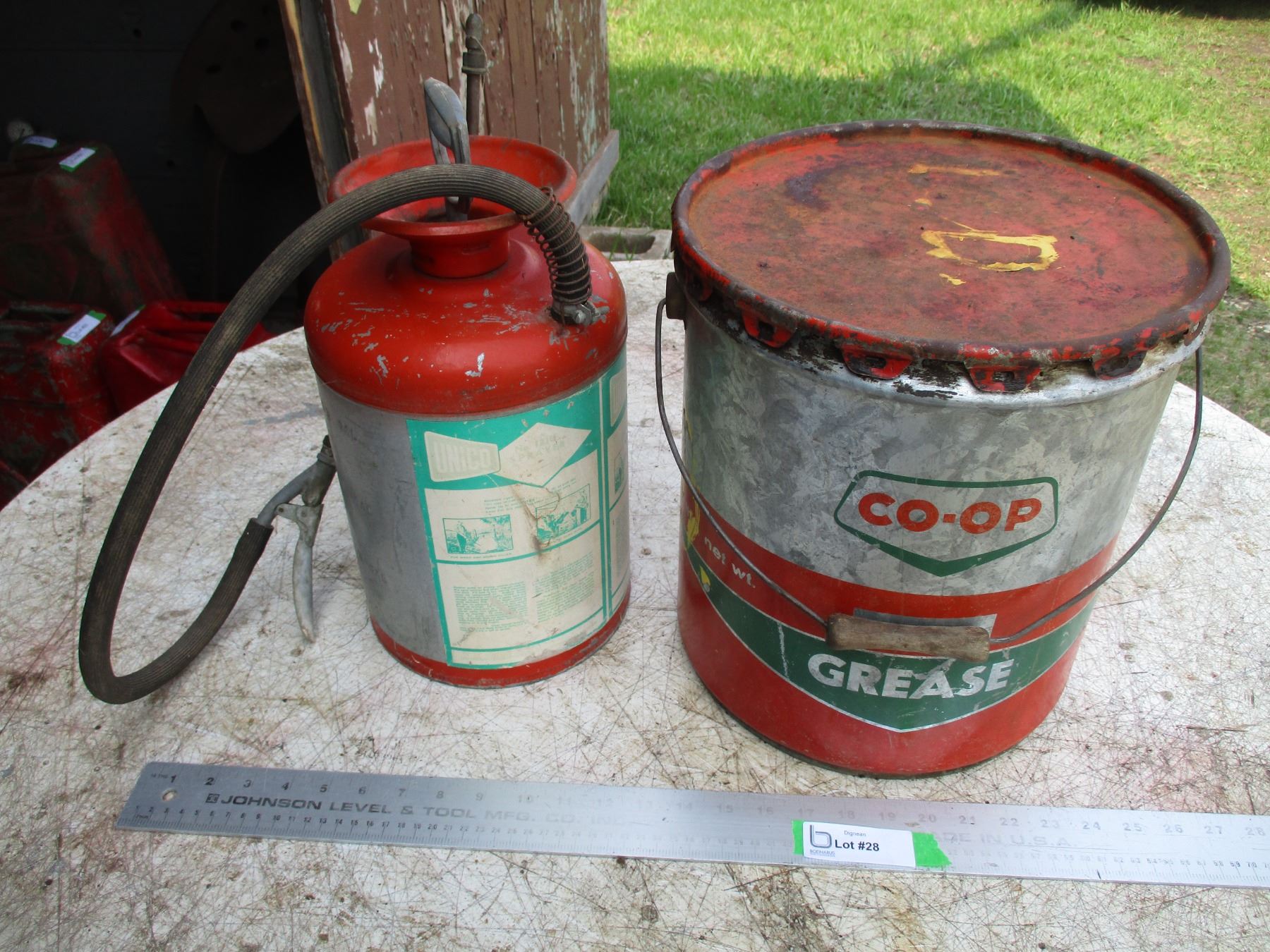 Co-Op Grease Pail w/Contents & Vintage Hand Pump Sprayer