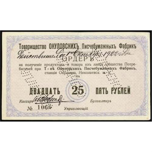 <style type="text/css"> body, td, th { font-family: Arial, Helvetica, sans-serif; font-size: 12px; color: #482424; margin: 0px; padding: 0px; } #header { background-image: url(http://www.bowersandmerena.com/ebay/images/template_v3_01.gif); clear: both; background-color: #590303; border-top-width: 2px; border-top-style: solid; border-top-color: #B38C4F; } #header #header_wrapper { height: 75px; clear: both; width: 800px; margin-right: auto; margin-left: auto; background-image: url(http://www.bowersandmerena.com/ebay/images/template_v3_03.gif); background-repeat: no-repeat; background-position: right; color: #F3EDCC; } #header #header_wrapper #header_logo { float: left; height: 75px; width: 444px; background-image: url(http://www.bowersandmerena.com/ebay/images/template_v3_02.gif); background-repeat: no-repeat; font-size: 10px; text-transform: capitalize; color: #B38C4F; } #header #header_wrapper #header_right { float: left; height: 75px; width: 356px; text-align: right; } #header #header_wrapper #header_right #headerLoginBtn { margin-bottom: 30px; } #header #header_wrapper #header_right input#txtSearch { color: #B49056; border: 1px solid #B49056; width: 175px; padding-top: 3px; padding-right: 3px; padding-bottom: 4px; padding-left: 3px; } #nav { height: 37px; background-image: url(http://www.bowersandmerena.com/ebay/images/template_v3_05.gif); clear: both; } #nav #nav_wrapper { height: 35px; width: 800px; margin-right: auto; margin-left: auto; border-left-width: 1px; border-left-style: solid; border-left-color: #B38C4F; } #nav #nav_wrapper a { padding-right: 15px; padding-left: 15px; border-right-width: 1px; border-right-style: solid; border-right-color: #B38C4F; height: 25px; padding-top: 10px; display: block; float: left; text-decoration: none; font-weight: bold; color: #5D0303; } #nav #nav_wrapper a:hover { color: #B38C4F; } #nav #nav_wrapper #search { float: right; padding-top: 7px; } #nav #nav_wrapper #search #txtSearch { font-family: Arial, Helvetica, sans-serif; font-size: 10px; text-transform: uppercase; color: #D2AE75; border: 1px solid #B38C4F; padding: 3px; } #content_bgd { background-image: url(http://www.bowersandmerena.com/ebay/images/template_v3_09.gif); background-repeat: repeat-y; background-position: center; padding-top: 15px; padding-bottom: 15px; background-color: #FBFBDB; } #content_wrapper { clear: both; height: auto; width: 800px; margin-right: auto; margin-left: auto; } .LotDetailWhite { line-height:normal; font-size:13px; font-family: arial,helvetica,sans-serif; color: White; font-weight: bold; } .LotDetailInformation { line-height:normal; font-size: 13px; font-family: arial,helvetica,sans-serif; } .LotDetailMessage { line-height:normal; font-size: 13px; font-family: arial,helvetica,sans-serif; color: red; } } tr.HeaderAuctionTitle td { color: #000000; font-weight: bold; padding: 2px; background-image: url(http://www.bowersandmerena.com/ebay/images/template_v3_05.gif); background-repeat: repeat-x; border-bottom-width: 1px; border-bottom-style: solid; border-bottom-color: #B38C4F; } table.AuctionSummary a, table.AuctionSummary a:link, table.AuctionSummary a:visited { color: #0000FF; text-decoration: none; } } td.tableHeaderLeft { border-left-width: 1px; border-left-style: solid; border-left-color: #B38C4F; } td.tableHeaderRight { border-right-width: 1px; border-right-style: solid; border-right-color: #B38C4F; } td.tableCellMiddle { border-left-width: 1px; border-left-style: solid; border-left-color: #B38C4F; border-right-width: 1px; border-right-style: solid; border-right-color: #B38C4F; padding: 5px; } tr.footer td { border-top-width: 1px; border-top-style: solid; border-top-color: #B38C4F; } </style> </head> <body> <div id="header"> <div id="header_wrapper"> <div id="header_logo"> </div> <div id="header_right"> </div> </div> </div> <div id="nav"> <div id="nav_wrapper"> <a href="http://www.bowersandmerena.com">Our eBayLive Auctions</a> <a href="#PaymentInfo">Payment Information</a> <a href="#ShippingInfo">Shipping Information</a> <a href="#About">About Bowers and Merena</a> </div> </div> <div id="content_bgd"> <div id="content_wrapper"> <table width="100%" border="0" cellpadding="5" cellspacing="0" class="AuctionSummary"> <tbody> <tr class="HeaderAuctionTitle" style="height: 25px;"> <td align="left" class="tableHeaderLeft" > </td> <td align="center" class="tableHeaderRight"> <span style="font-size: large;">Lot #2430. Co-op of Okulouska, Paper Factory Union, 1921 Scrip Notes.</span> </td> </tr> <tr> <td colspan="3" class="tableCellMiddle"> Lot of 2 notes. 1921. 5, 25 Rubles, P-Unlisted. Denis #1163. XF to Unc. condition.