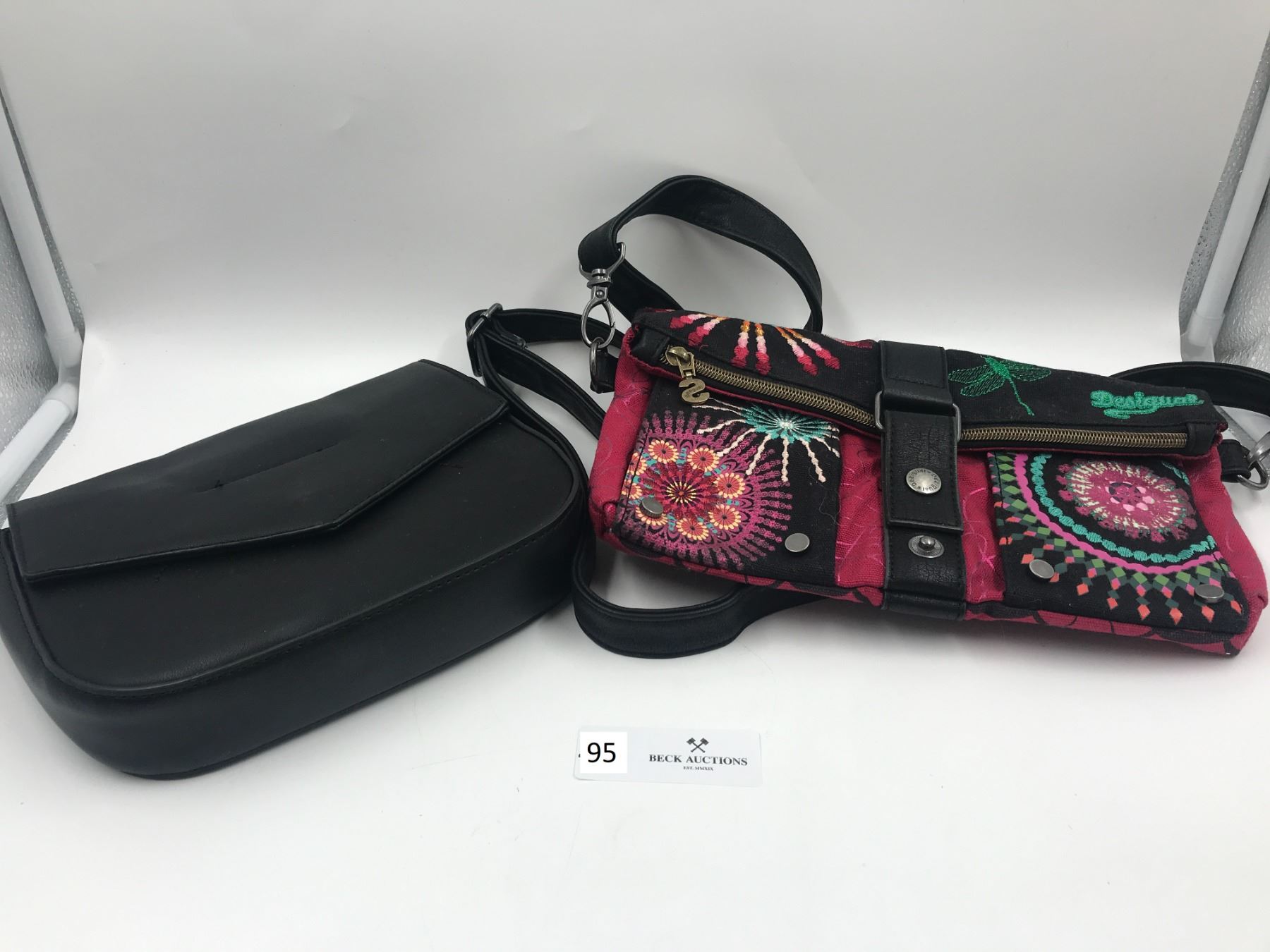 CoLab Black Clutch with Large Silver Handles and Desigual Cloth Shoulder Bag