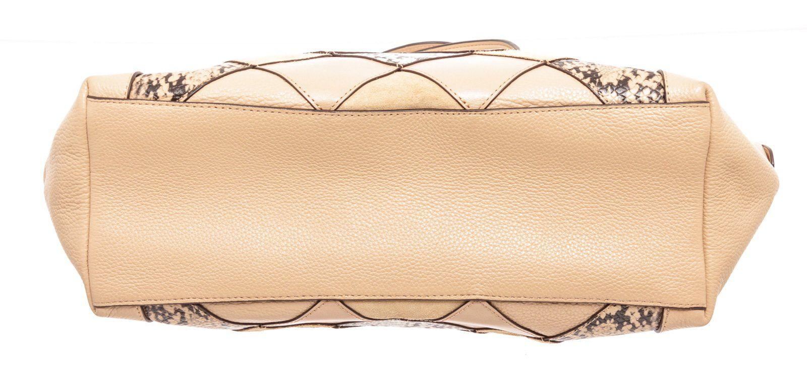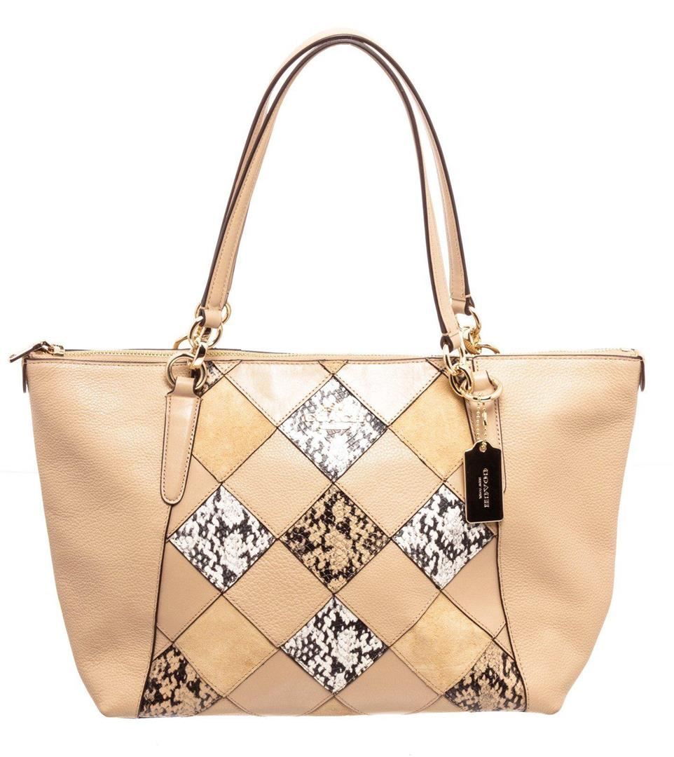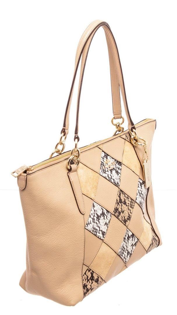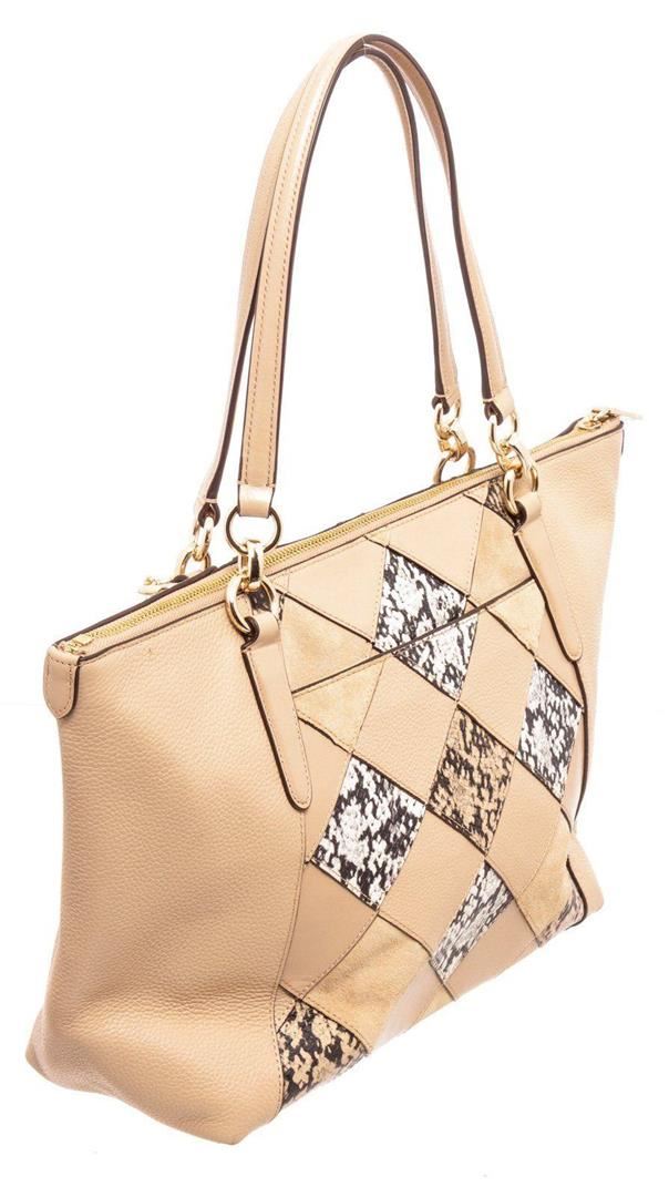 Coach Beige Snake Patchwork Ava Shoulder Bag with gold-tone hardware, interior zip pockets, dual top handles, leather shoulder strap, and zipper closure. Measurements: Length: 17.2 in / 44 cm Width: 5 in / 13 cm 14.1 in / 36 cm Condition: Pre-Owned Good overall, please see photographs for detail.