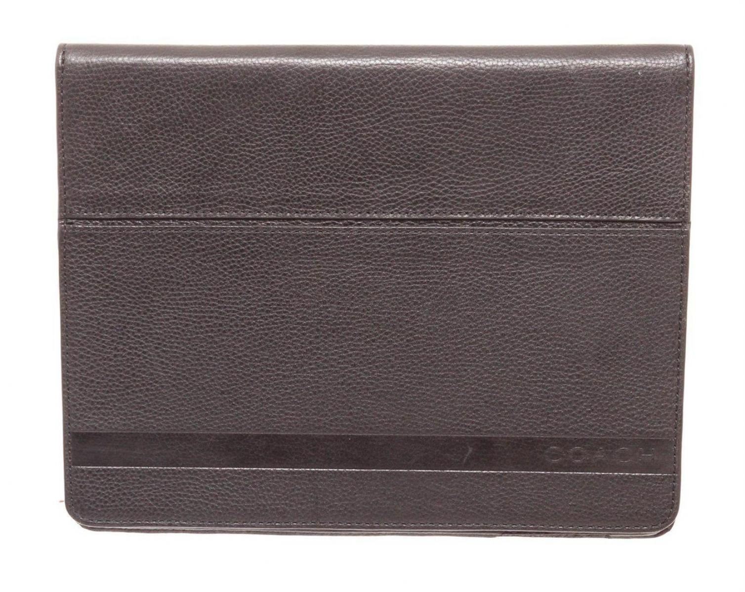 Coach black leather Camden Ipad case, embossed logo at front, black leather interior with Ipad pocket and overall bifold closure. Measurements: Length: 8.2 in / 21 cm Width: 0.5 in / 1 cm 10 in / 25 cmCONDITION: Pre-Owned Good overall, please see photographs for detail.