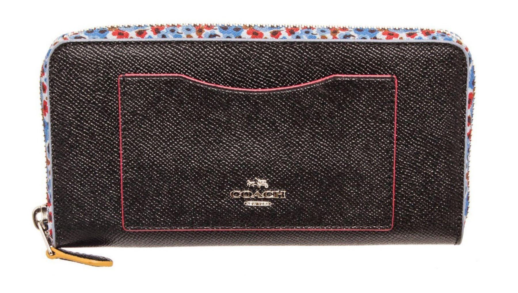 Coach blue leather floral print long zippy wallet with gold-tone hardware, logo placard at front, single slip pocket at front face, five interior compartments; one with zip closure, twelve cardholder slots and overall zip around closure. Measurements: Length: 8.25 in / 21 cm Width: 1 in / 3 cm 4.3 in / 11 cmCONDITION: Pre-Owned Good overall, please see photographs for detail.