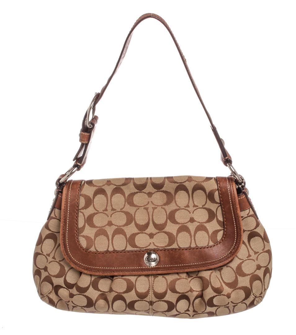 Crafted out of brown monogram canvas, brown leather trim, and silver tone hardware. Inner brown canvas lining, dual slip pockets, and one side zip pocket.