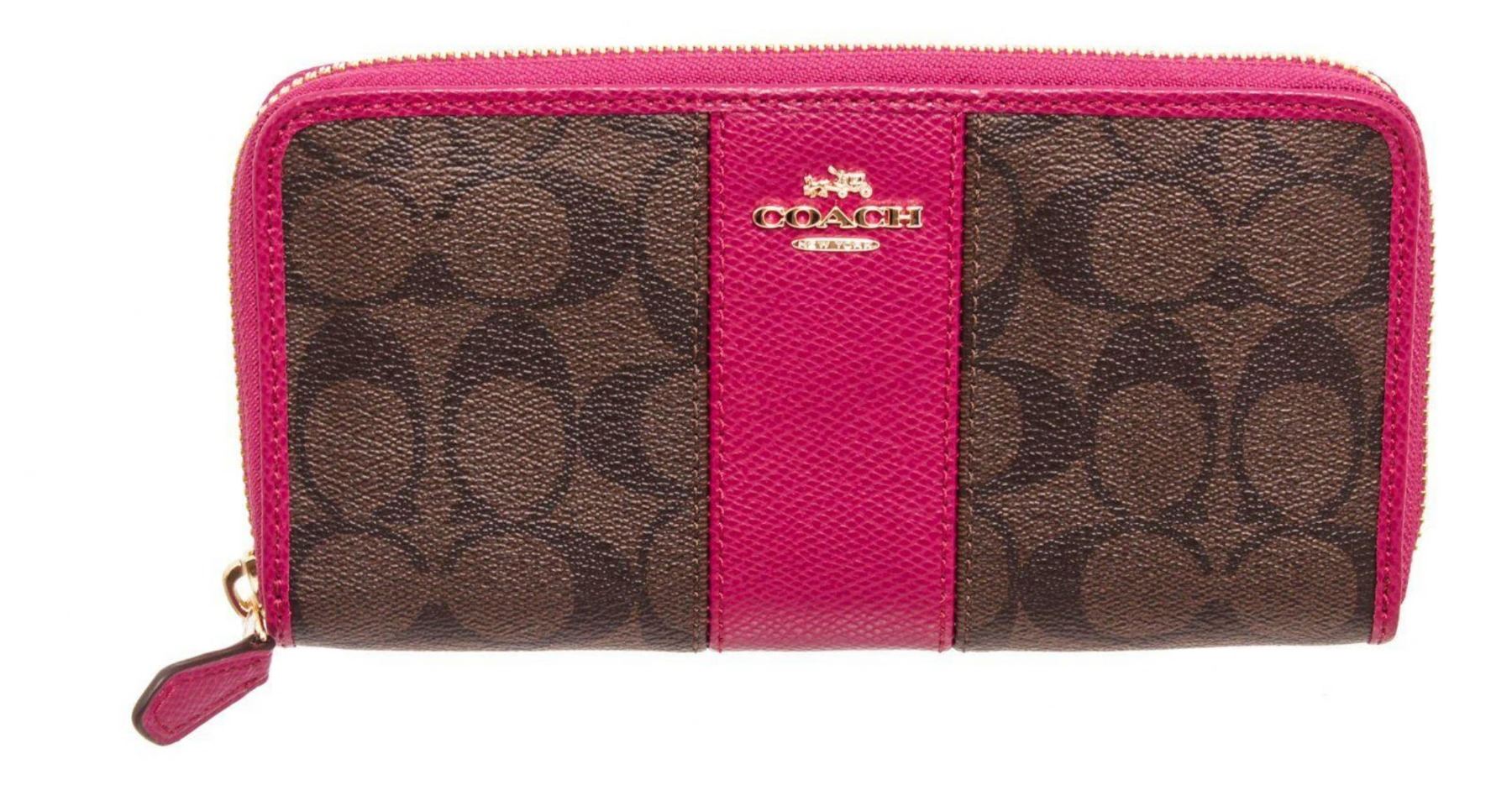 Coach brown & pink PVC leather zippy wallet with gold-tone hardware, logo placard at front, pink canvas & leather interior lining, five interior compartments; one with zip closure, twelve cardholder slots and overall zip around closure. Measurements: Length: 8.65 in / 22 cm Width: 0.75 in / 2 cm 4.5 in / 11 cmCONDITION: Pre-Owned Good overall, please see photographs for detail.
