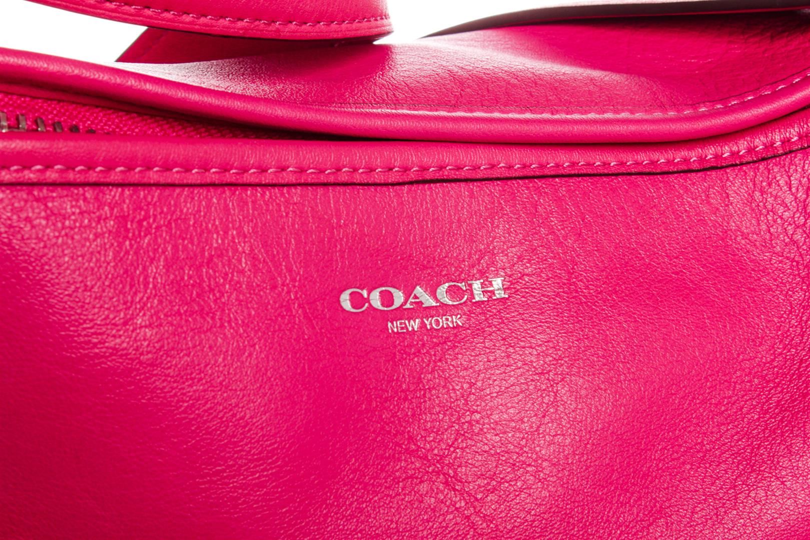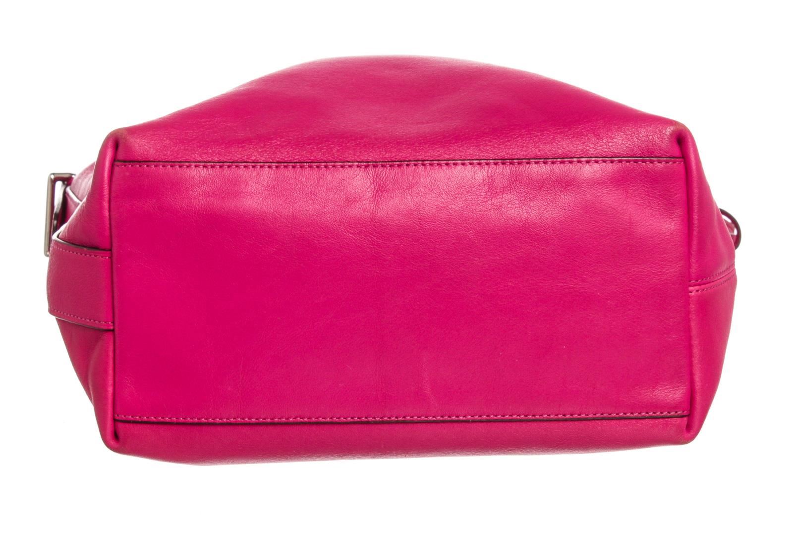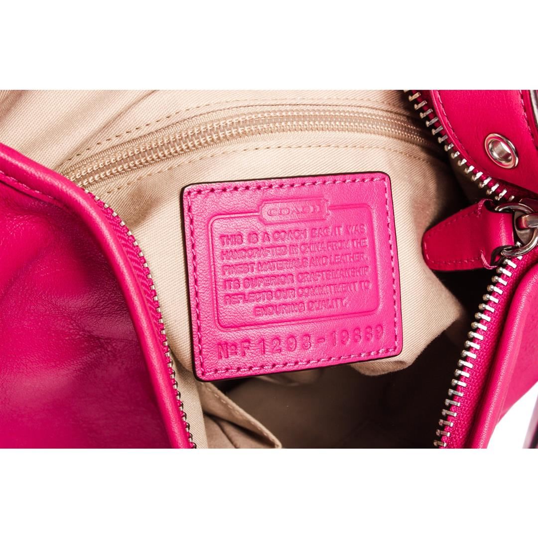 Crafted out of fuchsia pink leather, silver-tone hardware, and zip top closure. Inner tonal fabric lining.