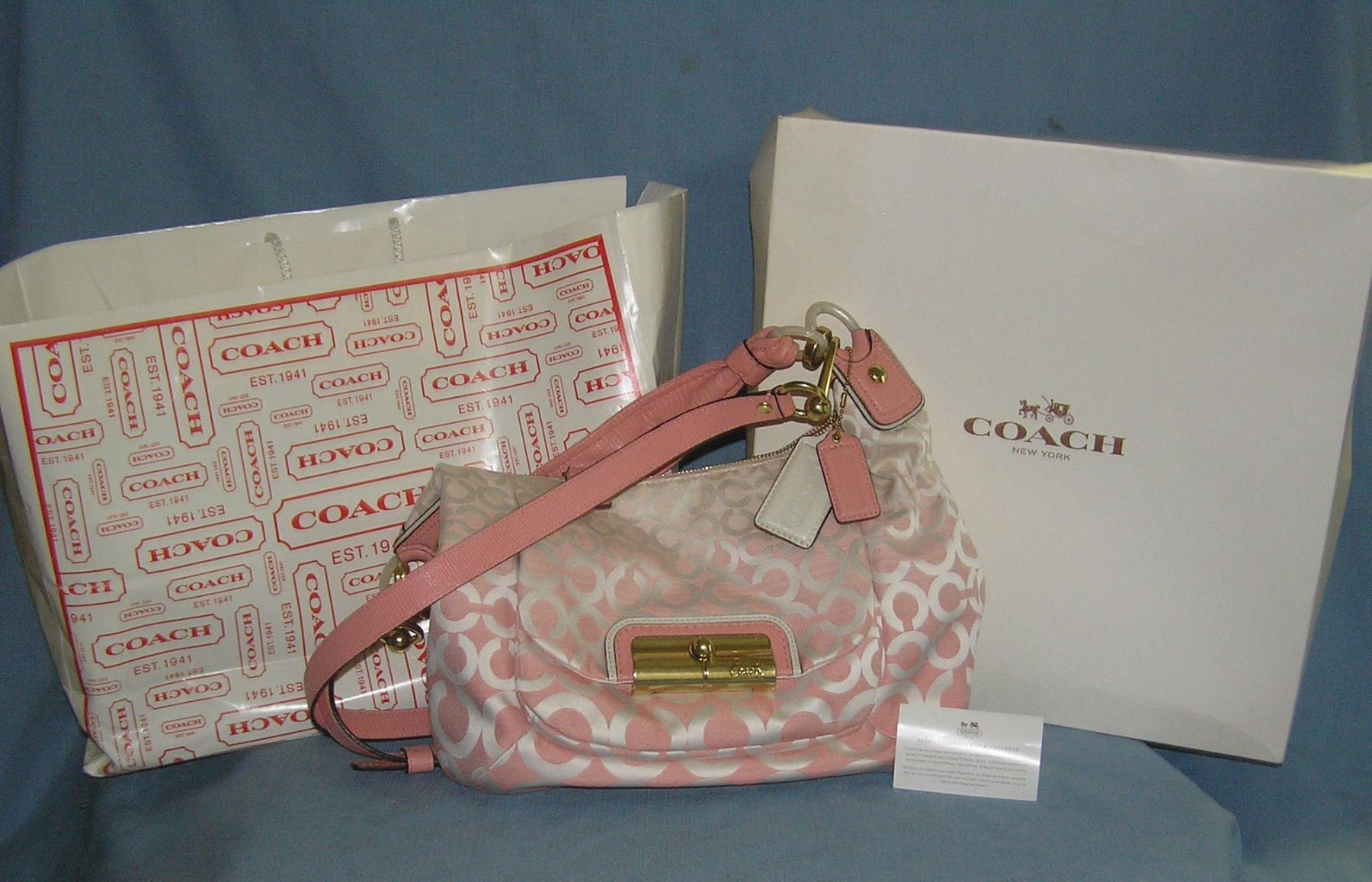 Great original Coach Kristen Op Art Hombre hobo hand bag in light peony pink number 16793 with original box and gift bag see additional photos est. value $300.00-$350.00