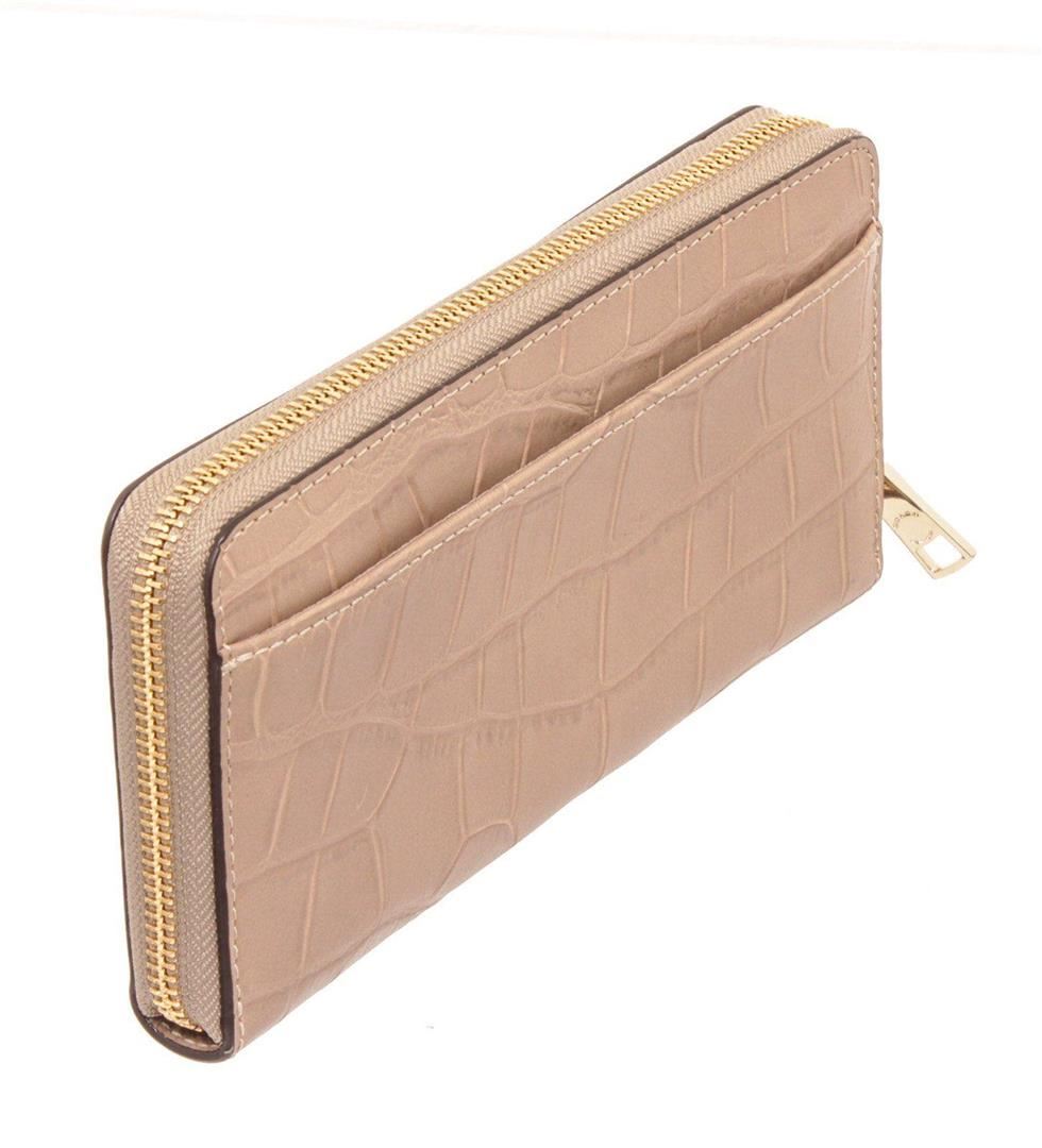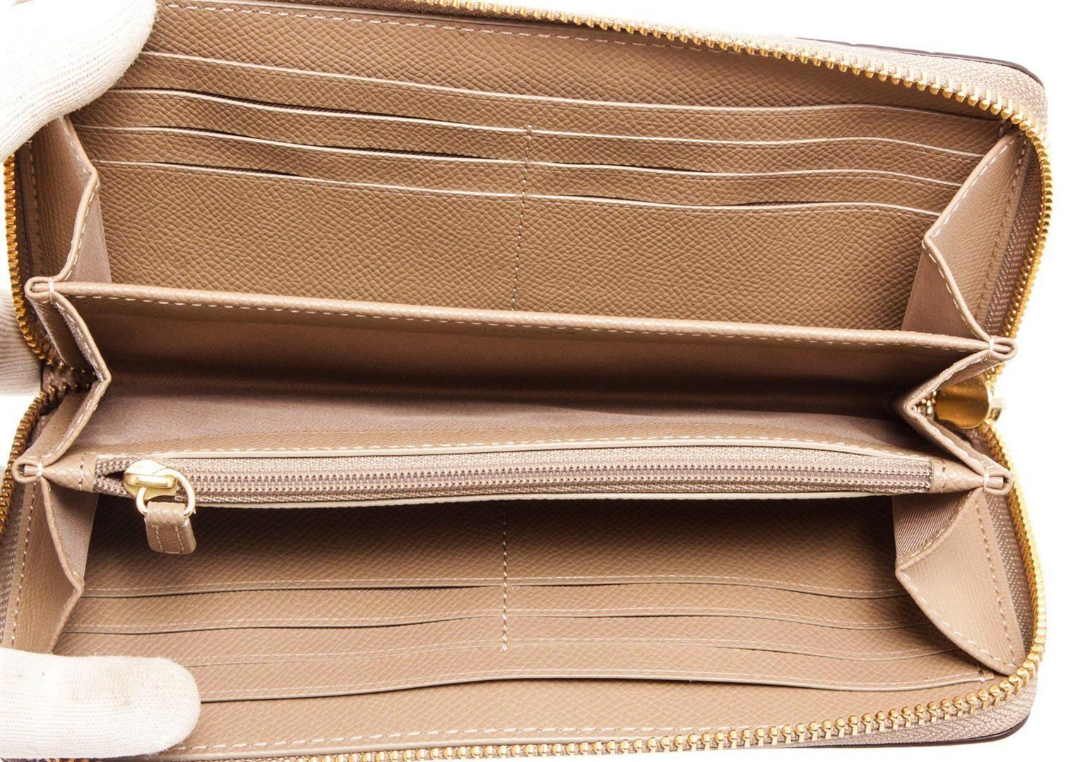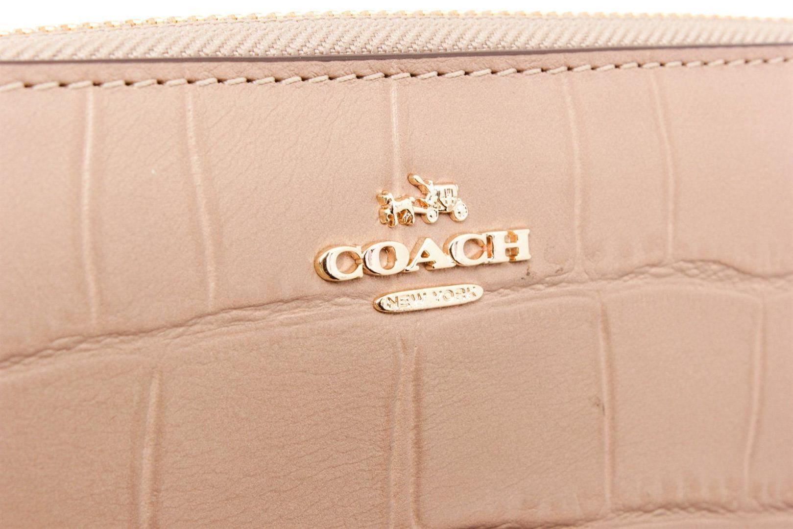 Coach tan crocodile embossed leather zippy wallet with gold-tone hardware, logo placard at front, single slip pocket at back, six interior compartments; one with zip closure, twelve cardholder slots and overall zip around closure. Measurements: Length: 8.2 in / 21 cm Width: 4.4 in / 11 cm 0.75 in / 2 cm Condition: Pre-Owned Good overall, please see photographs for detail.