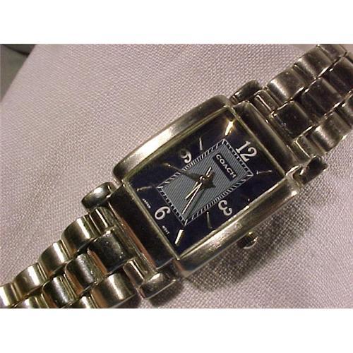 Amazing Coach Watch. The out color band of the dial changes colors! It alternates between blue, black, slate, green or red. I am not sure what has to happen to make it change. Everytime I pick it up it seems to be a different color. Maybe it is heat that effects the changes. I have not quite figure it out completely. Anyway it is a great watch. If is more a man's size dress watch but it could pass at a lady's watch as well. It has the original steel bracelet linked band that is adjustable. The clasp is a heavy duty lock in type. The condition is excellent. It works excellently with a brand new working quartz battery.