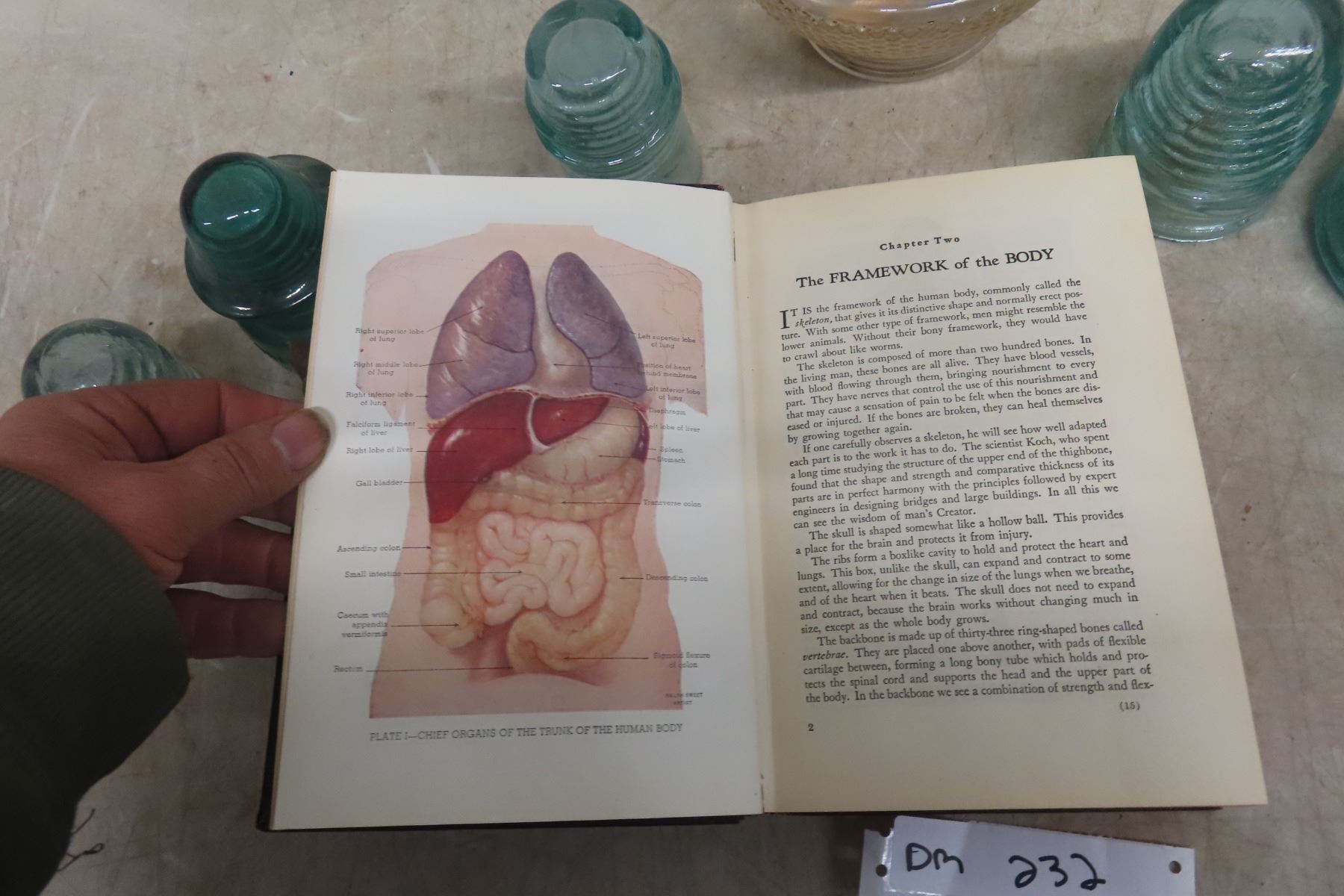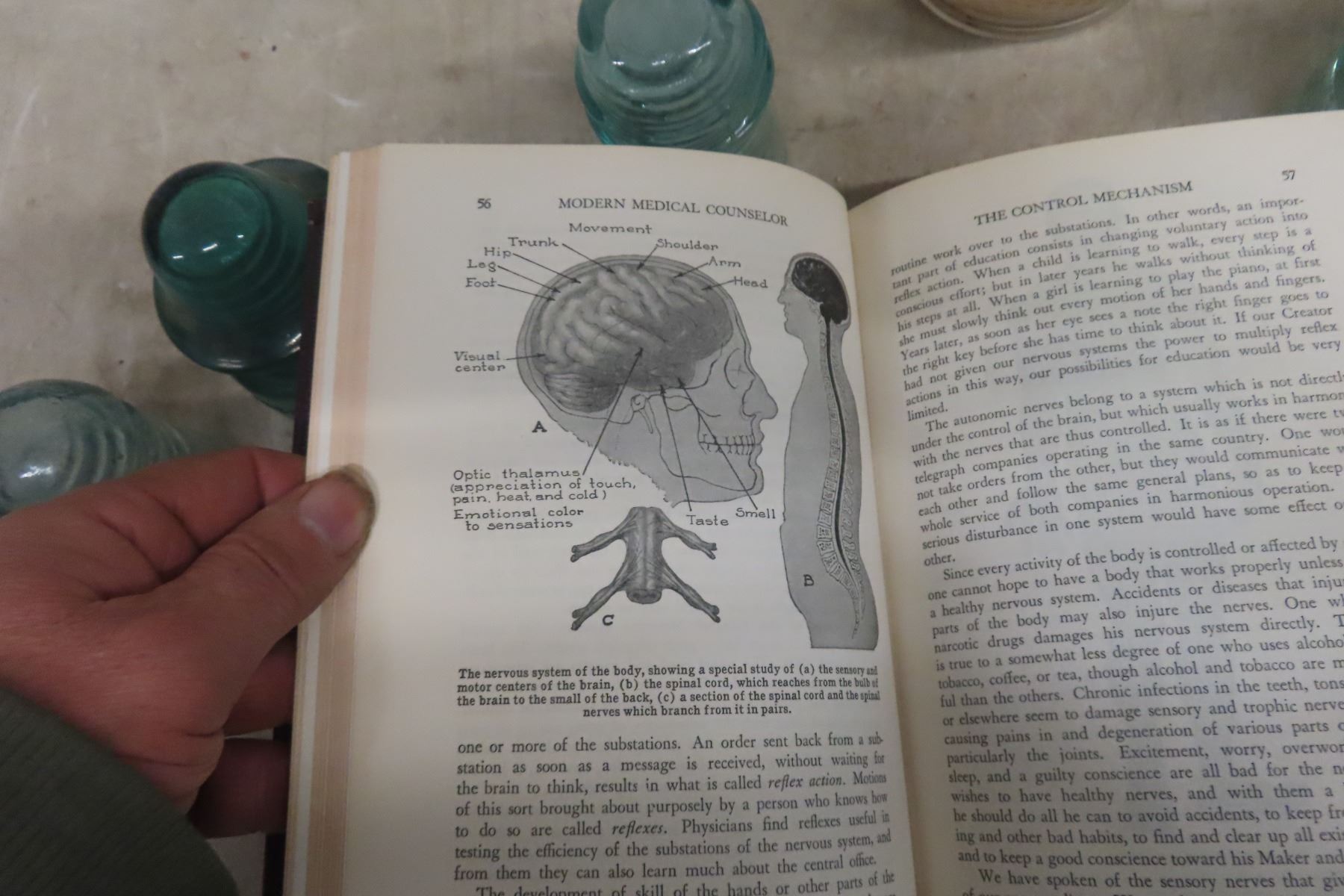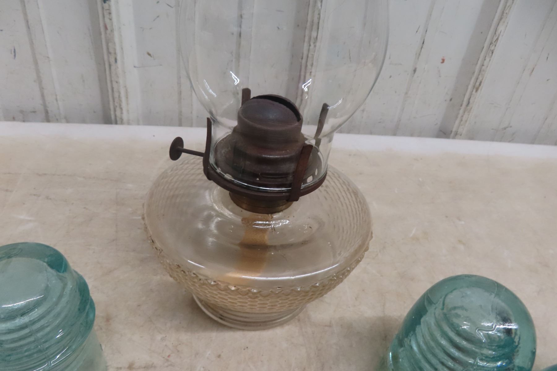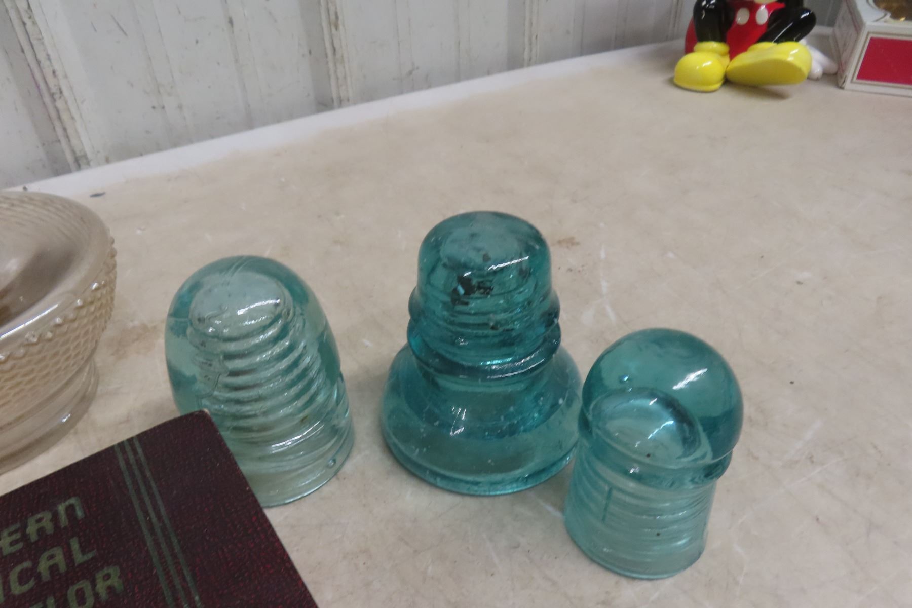 Coal Oil Lamp, Insulator, Medical Book, and Wood-Carved Duck