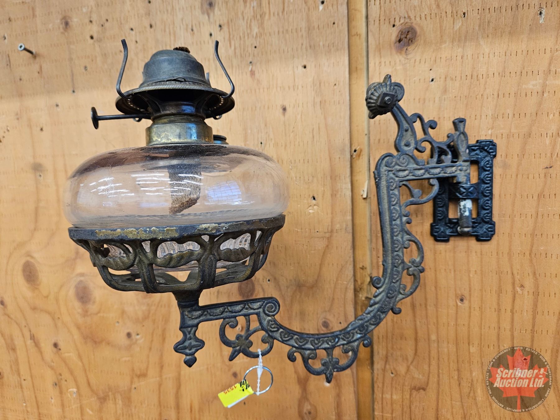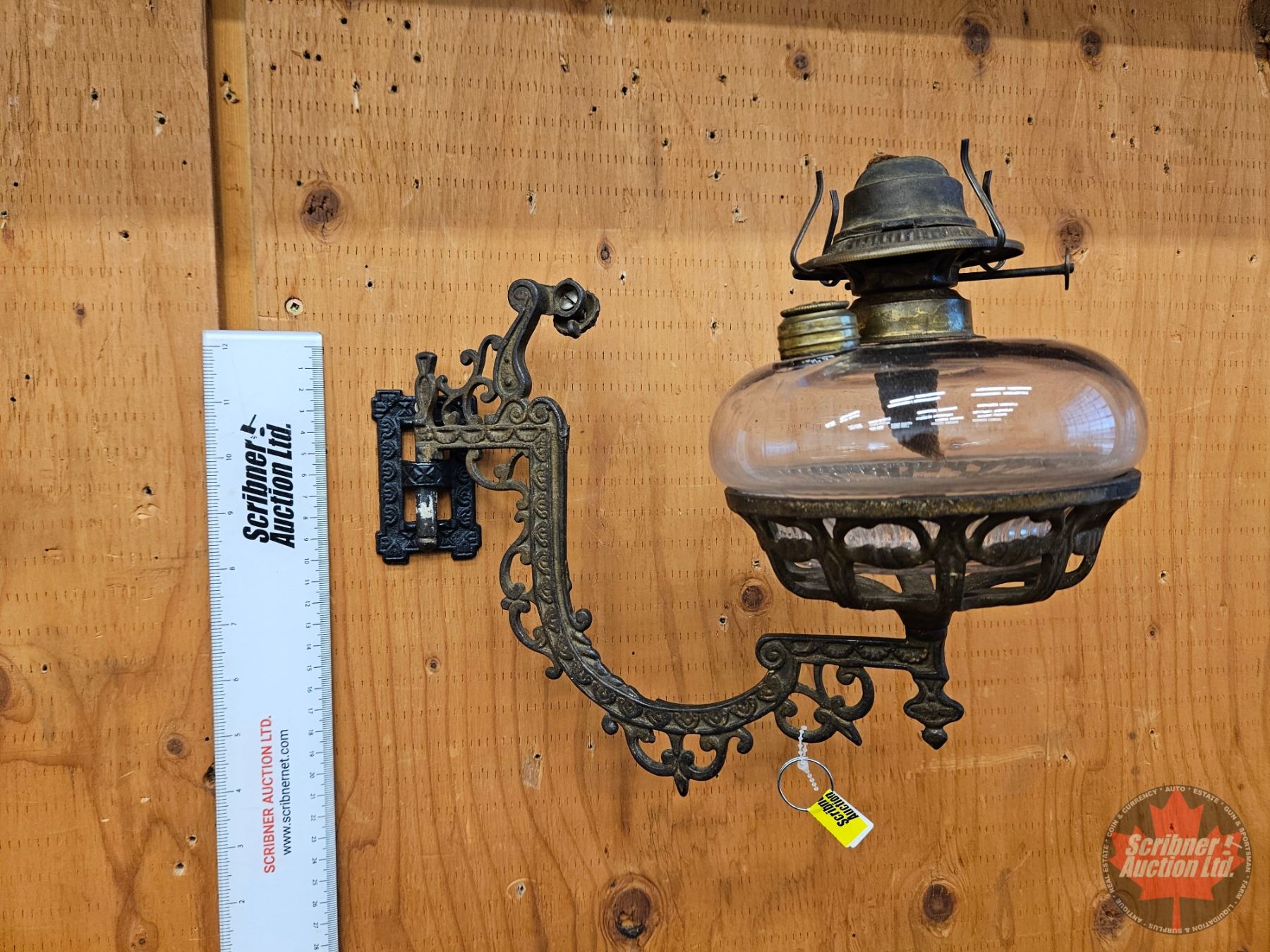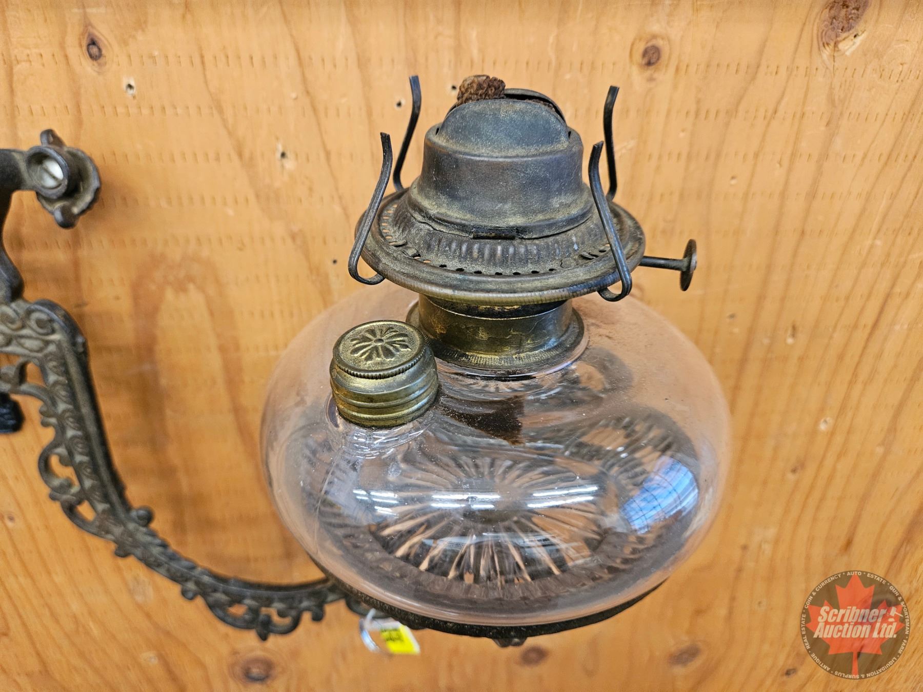 Coal Oil Lamp with Wall Mount Cast Iron Bracket