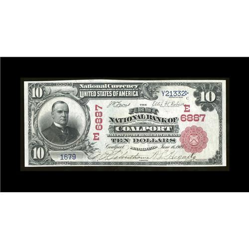 <B>Coalport, PA</B></I> - $10 1902 Red Seal Fr. 613 <B>The First NB</B></I> Ch. # (E)6887<BR>One of four Red Seals known from this bank, none of which could be nicer than this pen signed beauty, which displays colors, signatures and an overall appearance second to none. <B>Gem Crisp Uncirculated,</B></I> a premium example fit for the finest of collections.