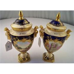 Coalport bone china urn shaped commemorative vase with domed cover, he body with gilded moulded r...