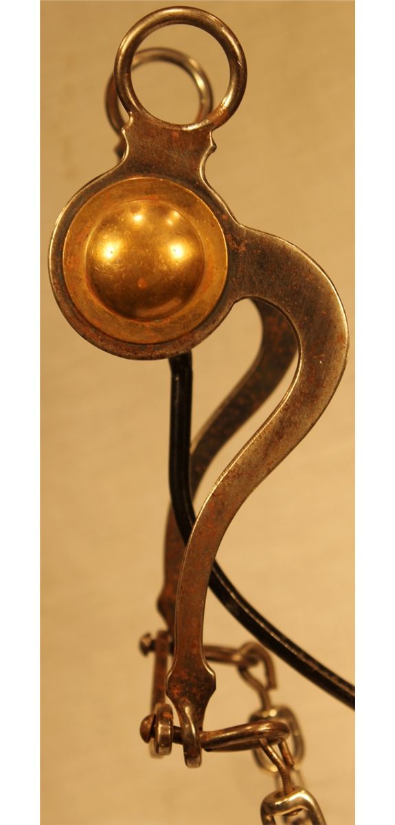Coard "S" Shank Bit; in nearly unused condition, still having blue on the iron, a port mouthpiece, 1 1/2" brass conchos, and a nice clear stickhorse mark.