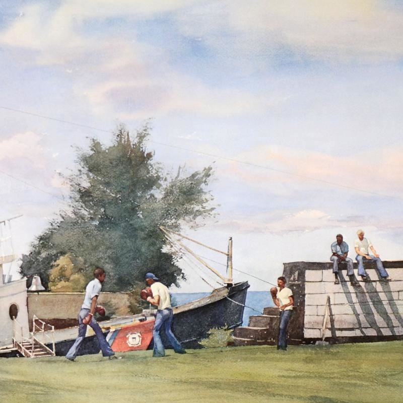 "Coast Guard Smoker" is a limited edition lithograph on paper by William Nelson, numbered and hand signed by the artist! Measures approx. 28.5" x 22.5" (with border); 25" x 19" (image).
