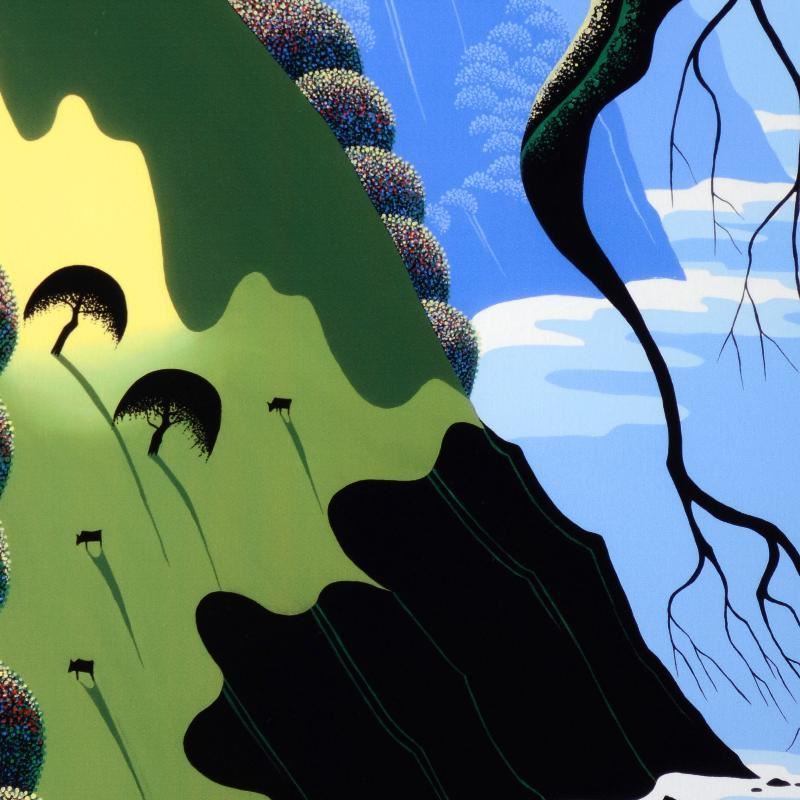 Larissa Holt, a student of distinguished artist Eyvind Earle(1916-2000), uses bold colors and breathtaking scenery to create images of Nature in her own unique style. "Coast and Cows" is a limited edition giclee on stretched canvas by Holt, numbered and bearing Holt's authorized signature. This piece comes gallery wrapped. Includes Certificate of Authenticity! Measures approx. 22" x 27" x 1.5" (image).
