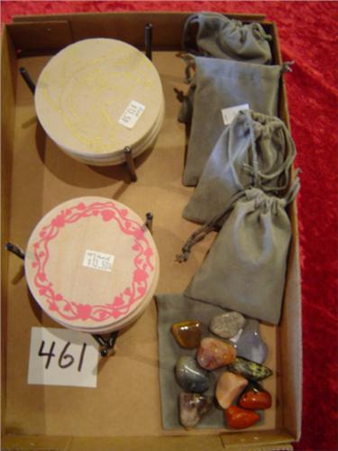 Two Sandstone 4 piece Coaster Sets w/stand, Five pouches with ten assort. polished stones each